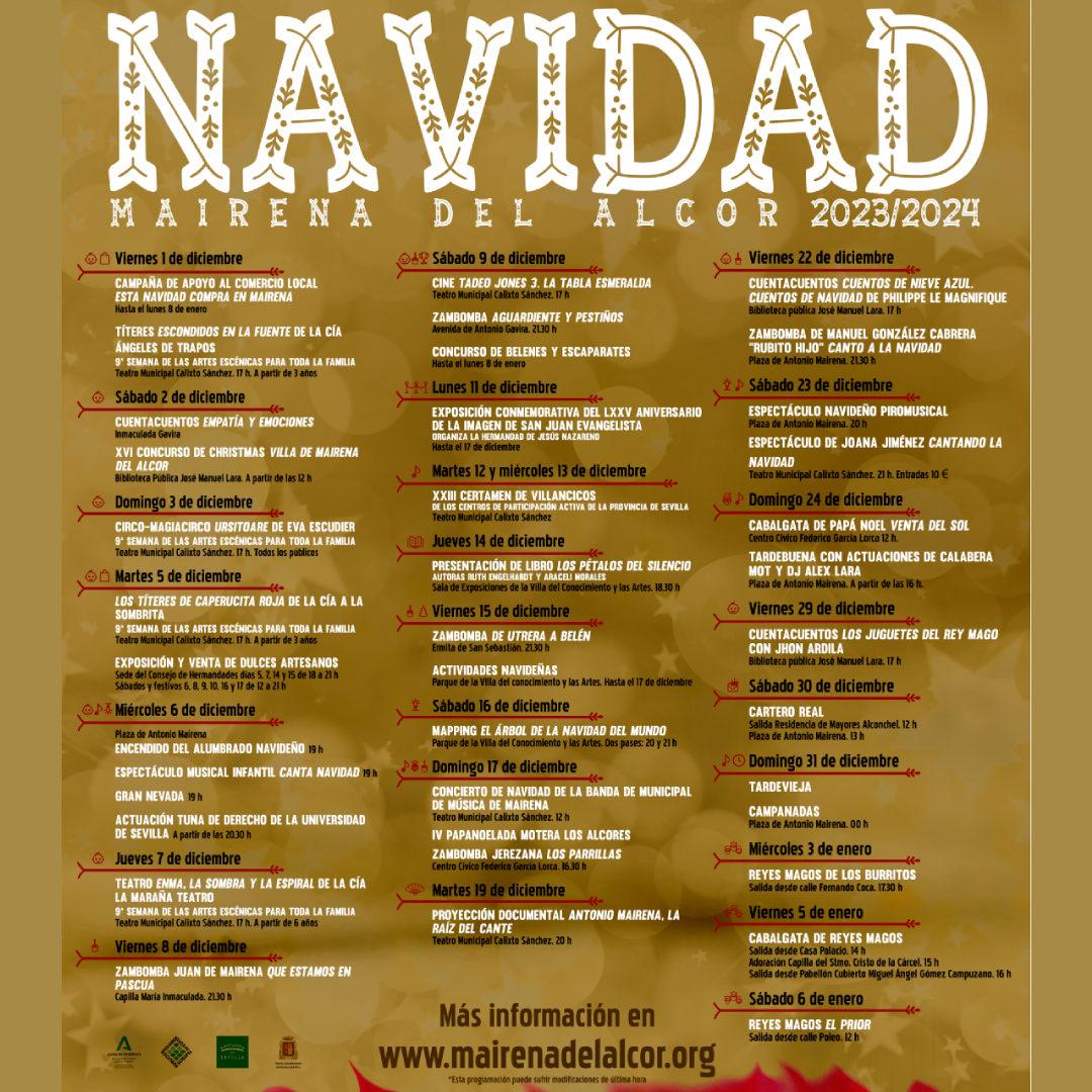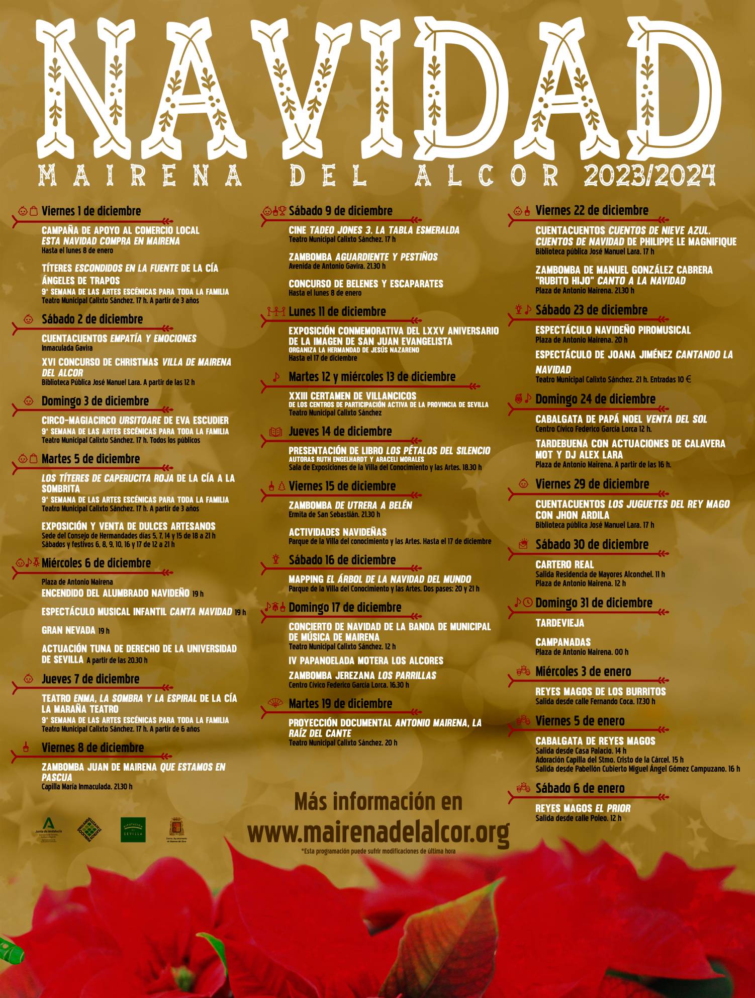 La concejala de Cultura y Festejos, Inmaculada Galocha, y el técnico de la Delegación de Cultura, Rubén Hernández, han presentado hoy la programación Navidad 2023/2024 en Mairena del Alcor.