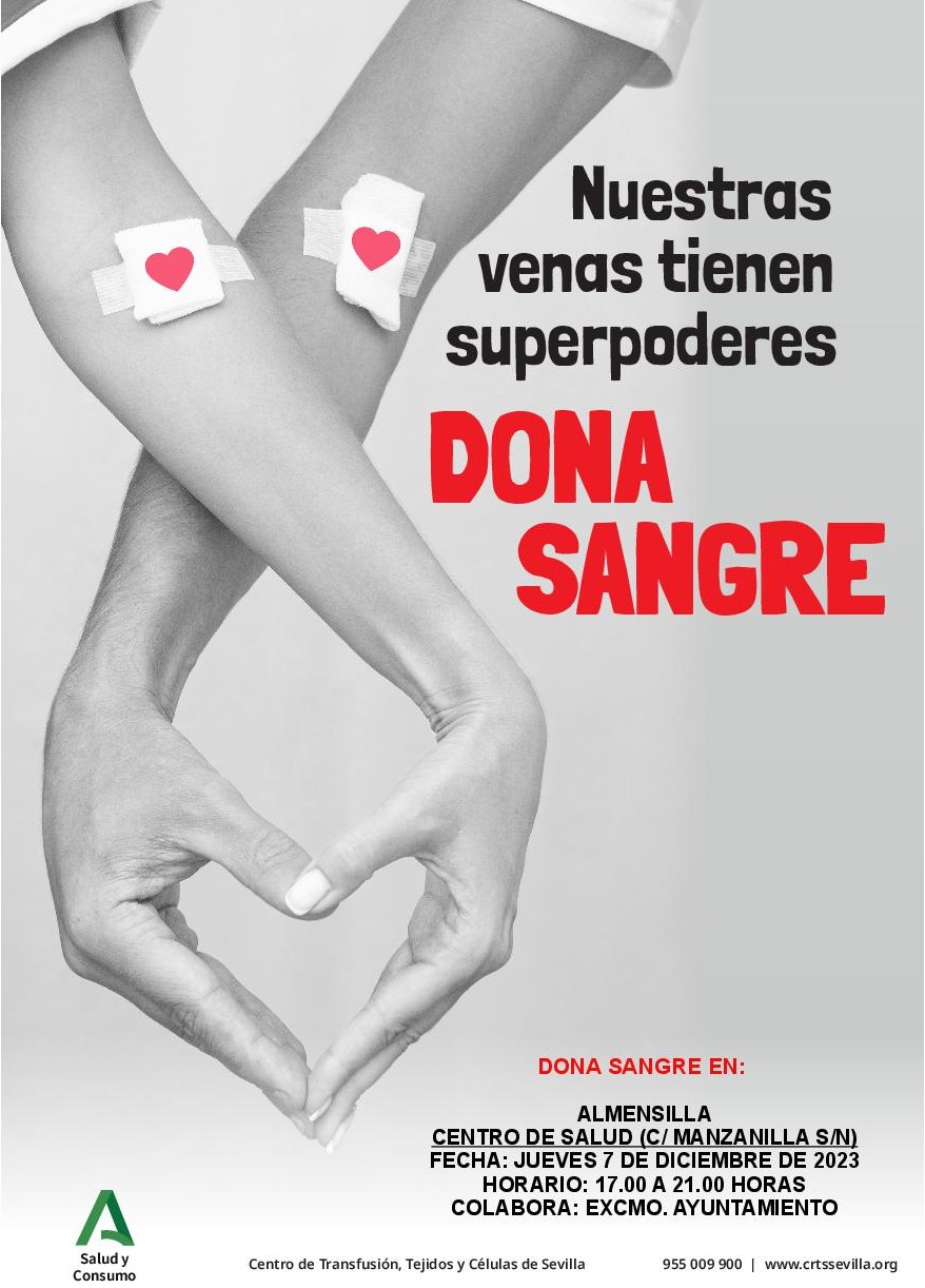 El jueves 7 de diciembre habrá una campaña de donación de sangre en la que colabora el Excmo. Ayuntamiento de Almensilla.