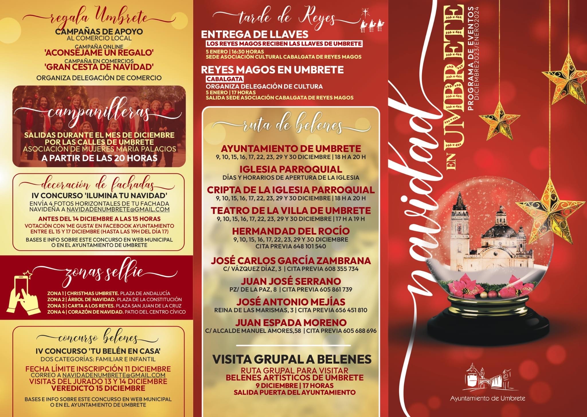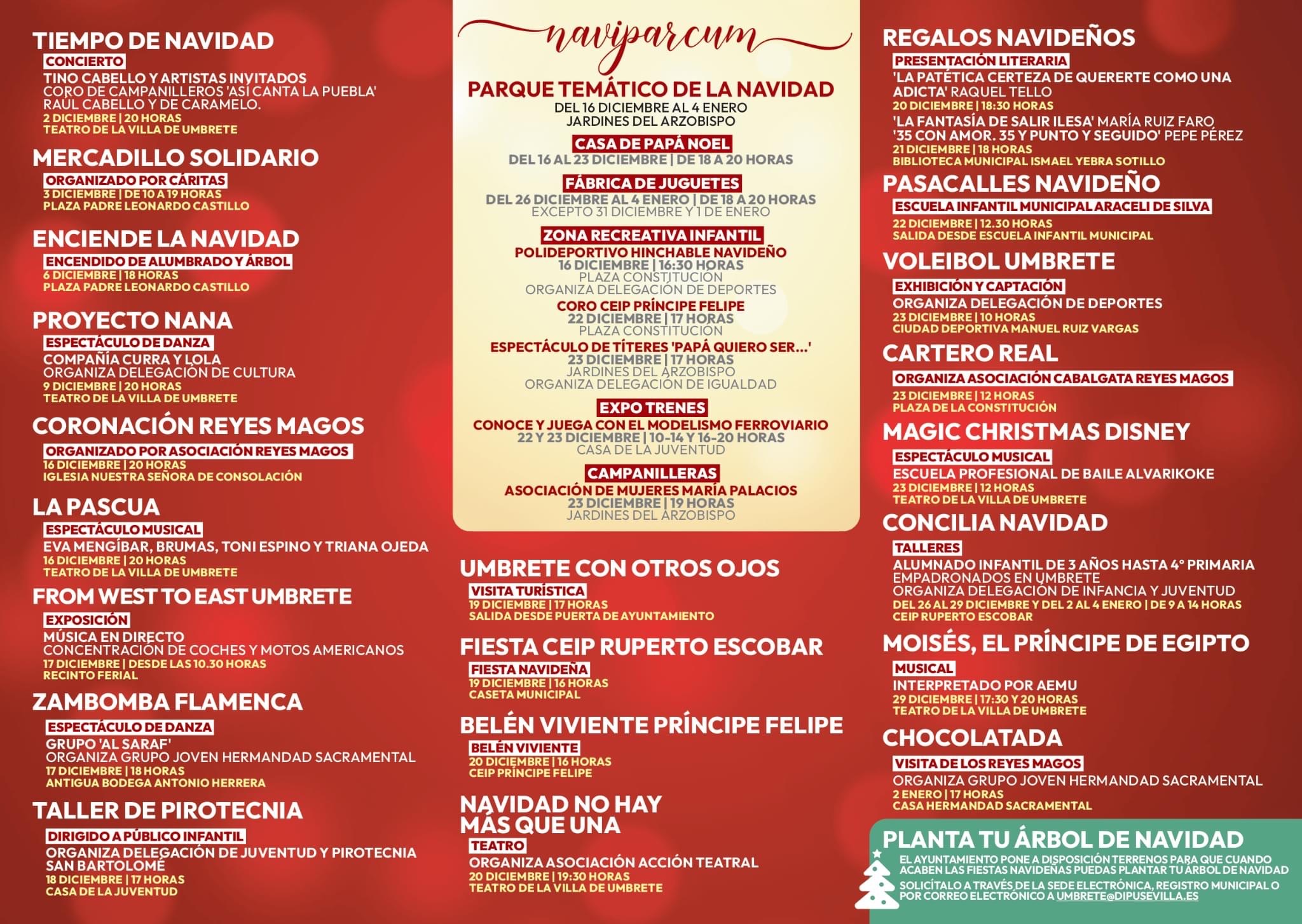 La Navidad volverá a inundar de magia el municipio de Umbrete un año más. El Ayuntamiento de Umbrete ha programado una ambiciosa propuesta que copará todo el mes de diciembre y los primeros días del 2024, a través de la cual pretende crear "ilusión, fraternidad y alegría compartida", según las palabras del alcalde, Pepe Llorente.