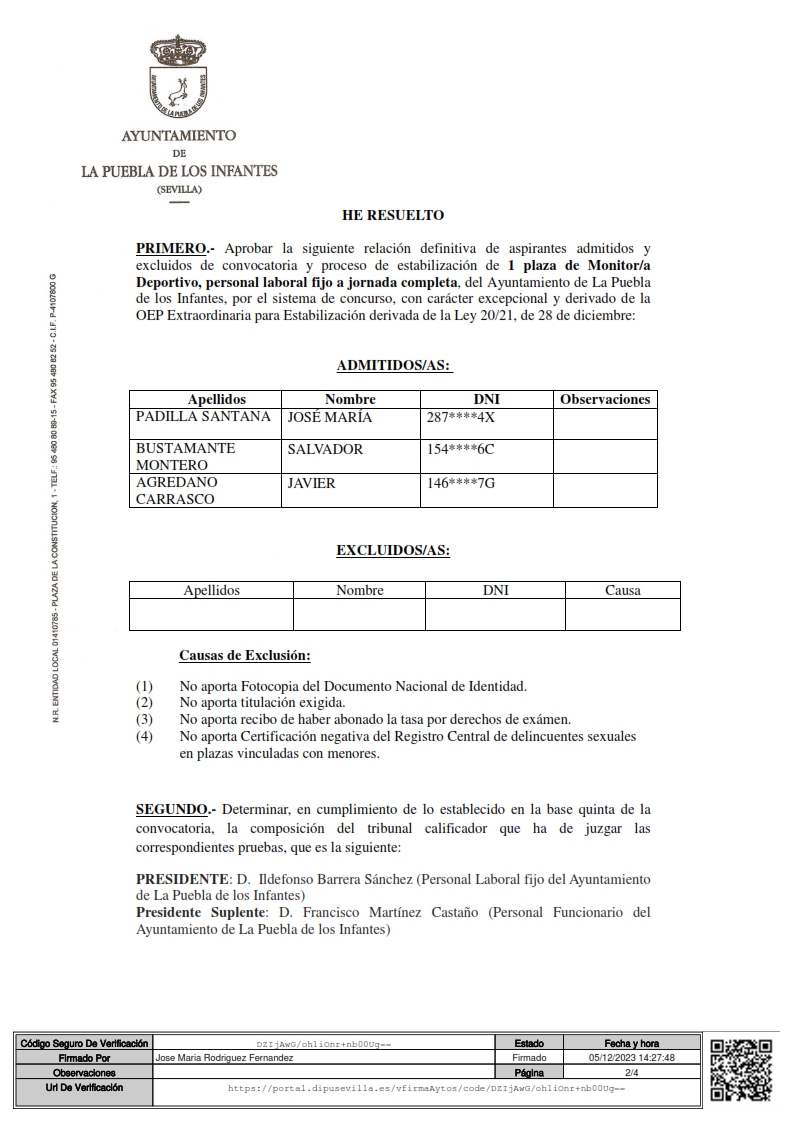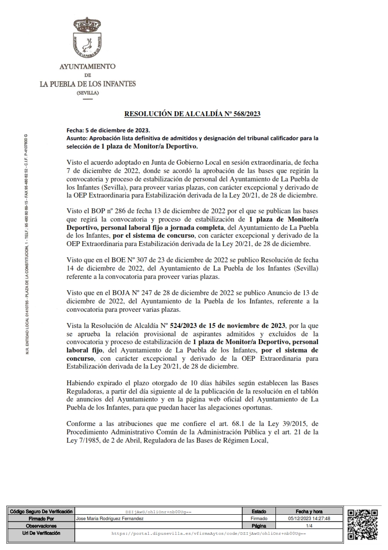 Imagen Imágenes Ubicación Categoría noticia Empleo Mostrar en el carrusel de la sección No Fecha Jue, 07/12/2023 - 10:29 Más información http://www.lapuebladelosinfantes.es/es/actualidad/noticias/Relacion-definitiva-…