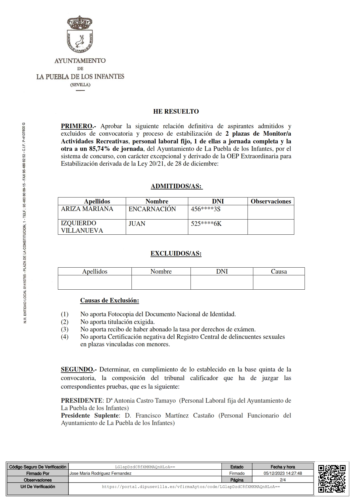 Imagen Imágenes Ubicación Categoría noticia Empleo Mostrar en el carrusel de la sección No Fecha Jue, 07/12/2023 - 09:37 Más información http://www.lapuebladelosinfantes.es/es/actualidad/noticias/Relacion-definitiva-…