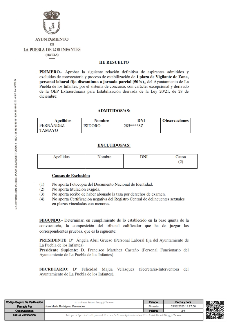 Imagen Imágenes Ubicación Categoría noticia Empleo Mostrar en el carrusel de la sección No Fecha Jue, 07/12/2023 - 11:42 Más información http://www.lapuebladelosinfantes.es/es/actualidad/noticias/Relacion-definitiva-…
