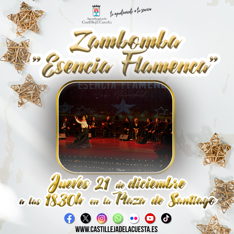 Fecha inicio Jue, 21/12/2023 - 13:08 Fecha fin Jue, 21/12/2023 - 13:08 Imágenes Ubicación Categoría evento Ciudadanía Mostrar en el carrusel de la sección No Más información http://www.castillejadelacuesta.es/es/actualidad/eventos/Zambomba-Esencia-Flame…