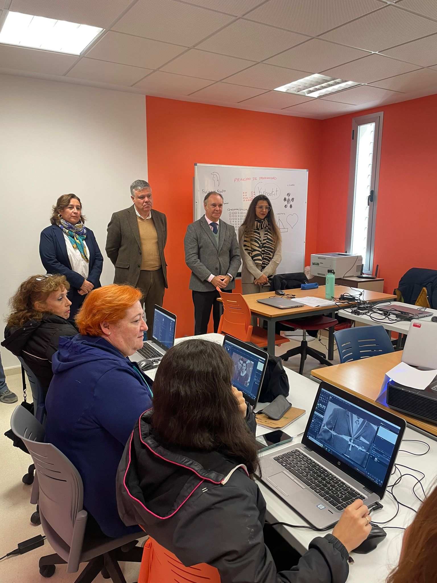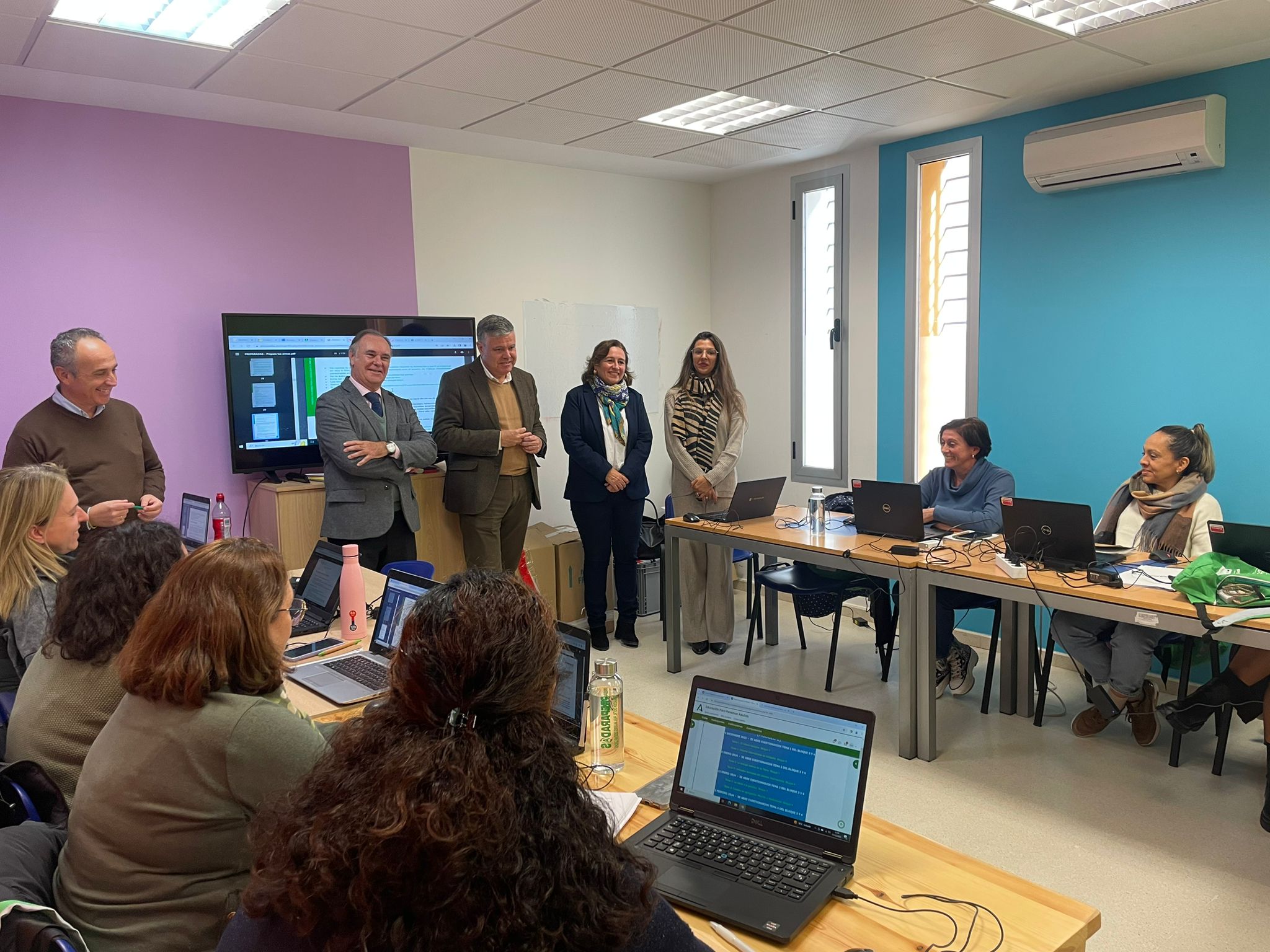 El Delegado de Empleo, Empresa y Trabajo Autónomo, Antonio Augustín, se ha desplazado hoy hasta Mairena para visitar uno de los últimos cursos puestos en marcha este mes de diciembre. En total, Mairena suma 19 acciones formativas con 286 mujeres matriculadas. En la actualidad se imparten en la localidad en simultáneo dos cursos: "Sorprende a tu audiencia con presentaciones eficaces" y "Triunfa en redes sociales con tus propios contenidos multimedia", que suman 34 alumnas.