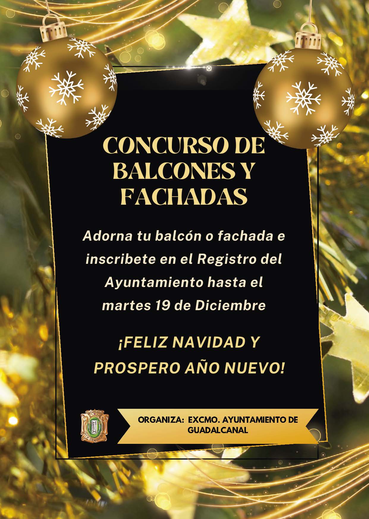 El Ayuntamiento de Guadalcanal felicita a todos, las Navidades e invita a comercios, entidades públicas y particulares a decorar escaparates, balcones y ventanas con elementos típicos de estas fechas navideñas.