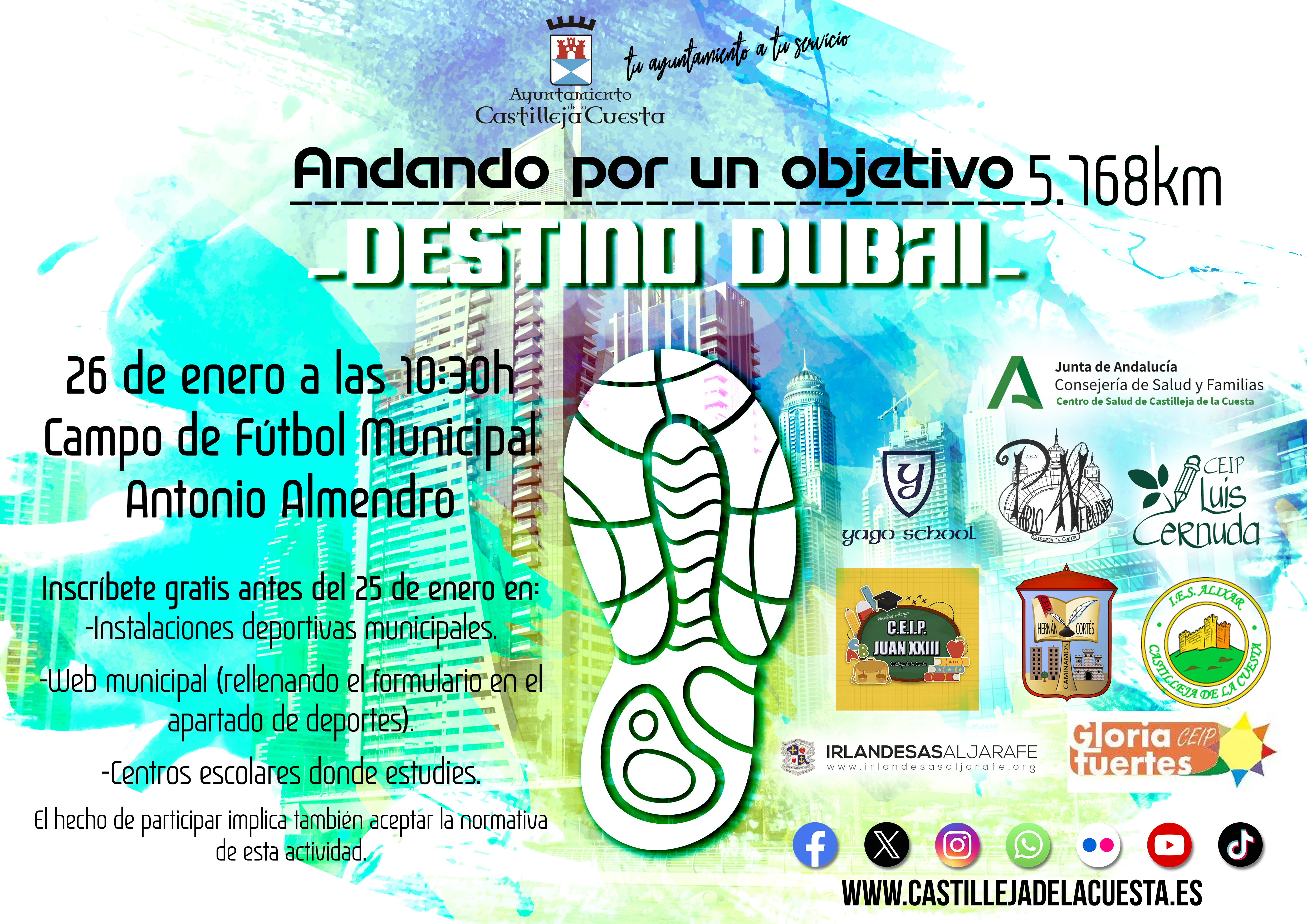 Fecha inicio Vie, 26/01/2024 - 13:12 Fecha fin Vie, 26/01/2024 - 13:12 Imágenes Ubicación Categoría evento Ciudadanía Mostrar en el carrusel de la sección No Más información http://www.castillejadelacuesta.es/es/actualidad/eventos/Andando-por-un-Objetiv…