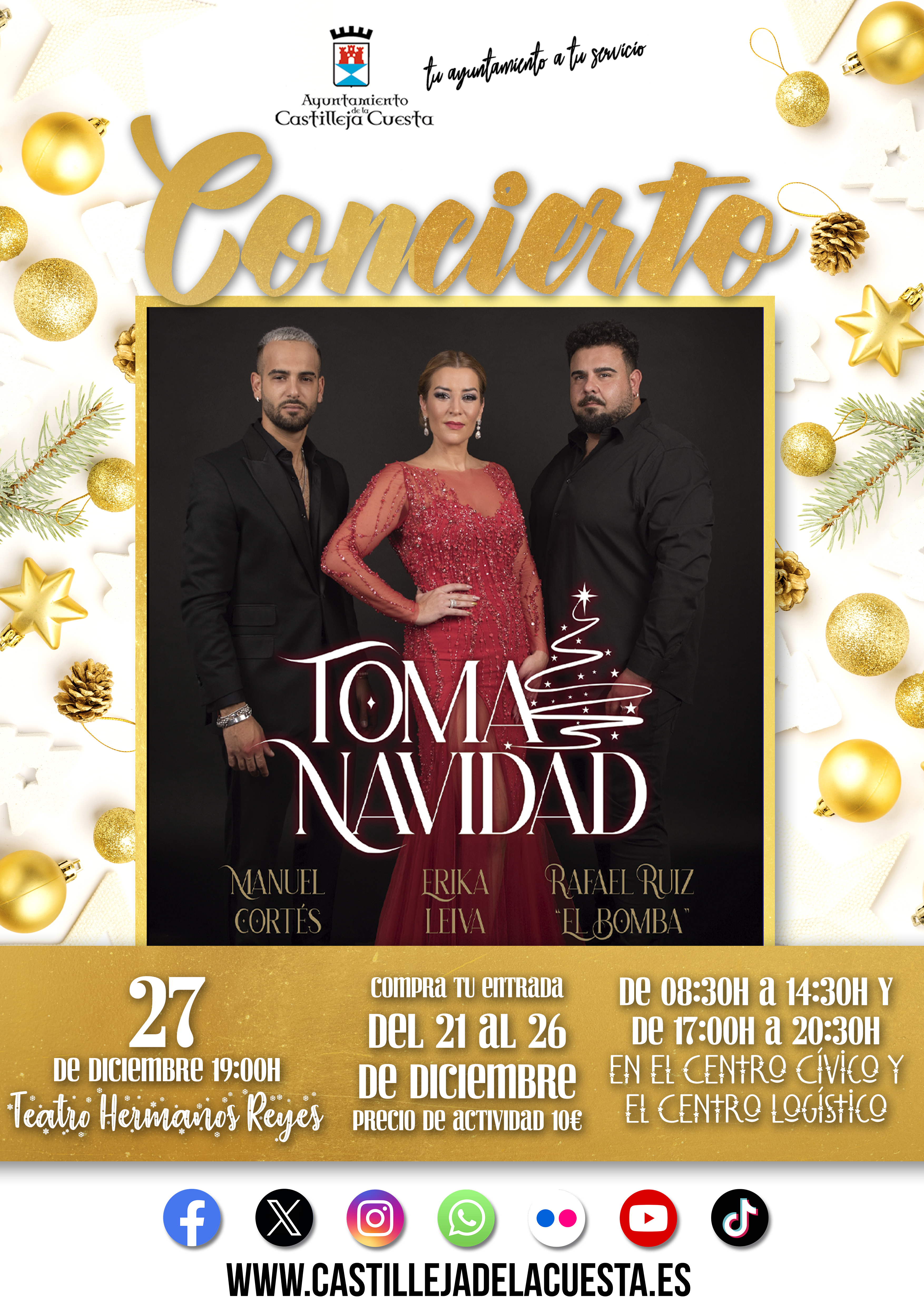 Fecha inicio Mié, 27/12/2023 - 10:55 Fecha fin Jue, 21/12/2023 - 10:55 Imágenes Ubicación Categoría evento Ciudadanía Mostrar en el carrusel de la sección No Más información http://www.castillejadelacuesta.es/es/actualidad/eventos/Concierto-Toma-Navidad/