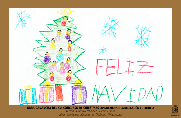 El jurado del XVI Concurso de Christmas ha seleccionado el dibujo ganador, convocado por la Delegación de Cultura en el contexto de la programación de #Navidad. Es obra del niño Gonzalo Martínez Guillén, de 6 años de edad. Recibirá como premio un lote de libros.
