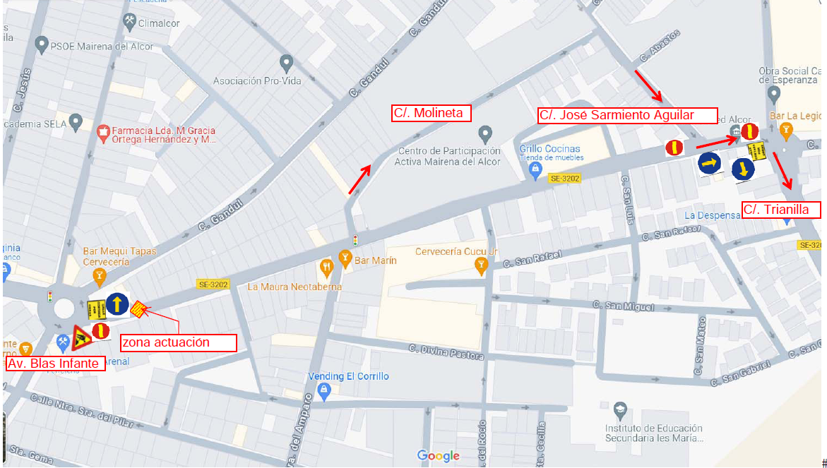 Corte de la calle Sevilla, entre las calles Ntra. Sra. del Amparo y Trianilla, por reposición del pavimento.