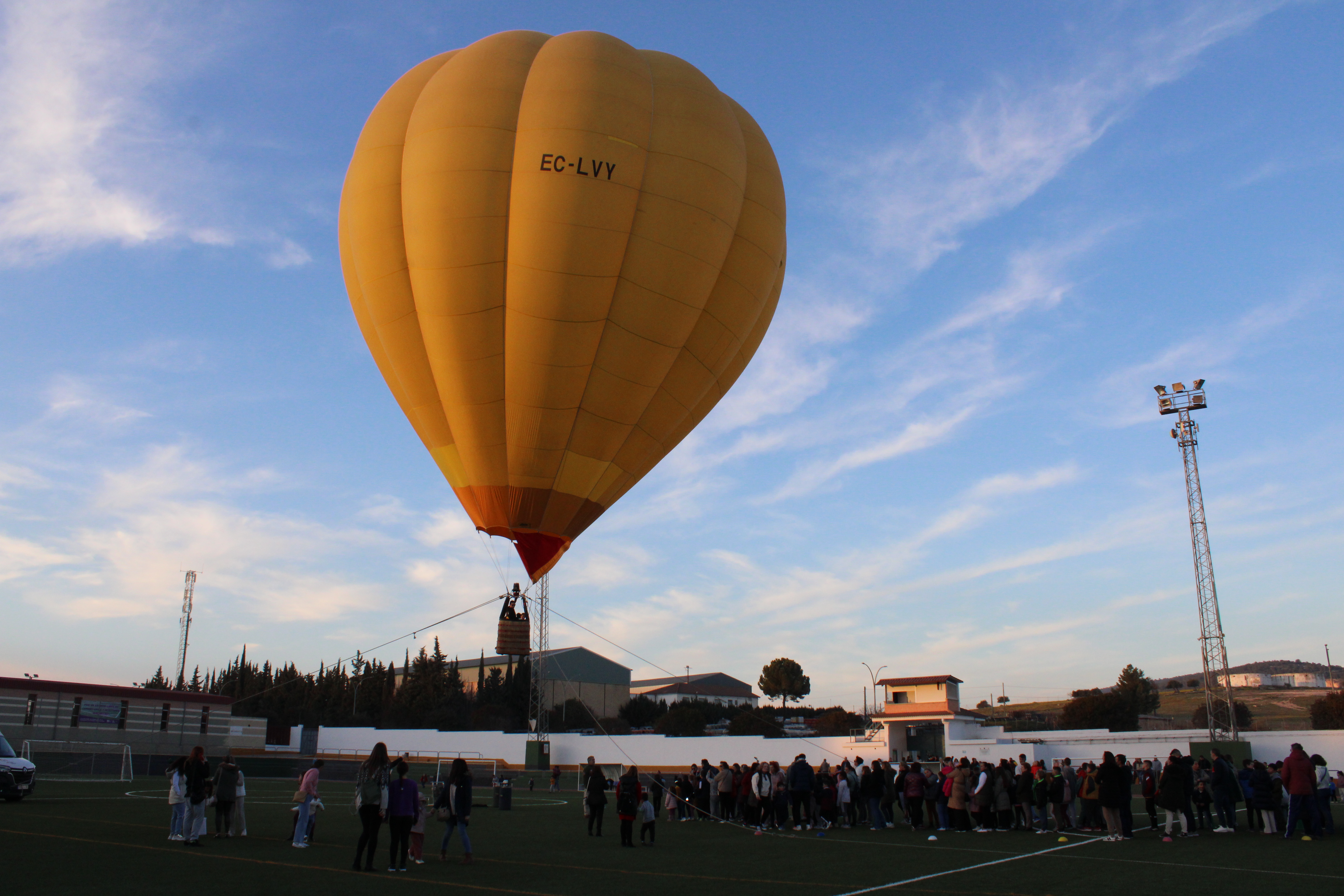 La Cartera Real, encargada de entregar a los Reyes Magos las cartas de todos los niños y niñas, llegaba en la tarde de ayer, por primera vez a Pedrera, en globo aerostático. Fue recibida con el cariño de cientos de niñas, niños y familias que se acercaron hasta el Estadio Municipal de Deportes para entregarle sus deseos y además, poder disfrutar de un paseo en globo.