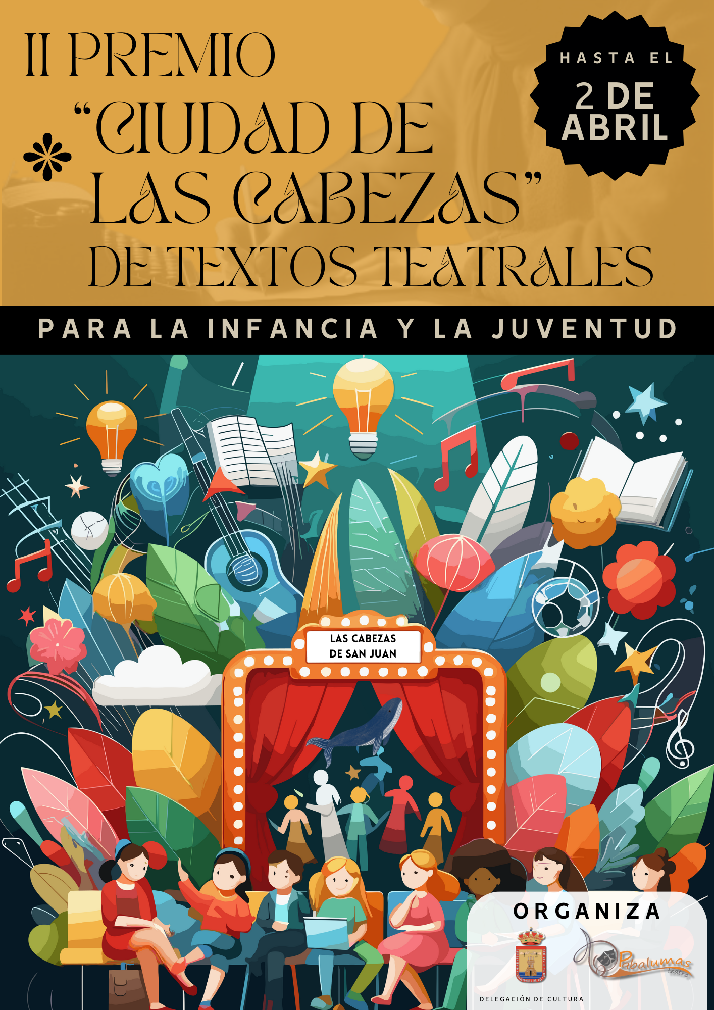 La Delegación de Cultura del Ayuntamiento de Las Cabezas de San Juan y la Asociación Cultural Pabalumas Teatro organizan el II Premio "Ciudad de Las Cabezas" de Textos Teatrales para la Infancia y la Juventud con el objetivo de estimular y suscitar un mayor interés por un teatro Infantil y Juvenil de calidad. Un concurso abierto a autores de cualquier nacionalidad que presenten obras inéditas destinadas al público más joven. Se establece un primer premio consistente en 500 € y la publicación de la obra ganadora y se podrá conceder un accésit cuyo premio consistirá en la publicación del texto junto con la obra ganadora. El plazo de presentación de originales finalizará el próximo dos de abril. El fallo del jurado se dará a conocer antes del veintisiete de mayo y la entrega de premios se realizará en la Gala de Clausura del X Certamen de Teatro Infantil y Juvenil "Ciudad de Las Cabezas", el próximo nueve de junio.