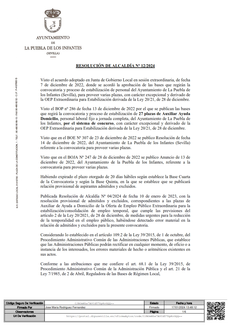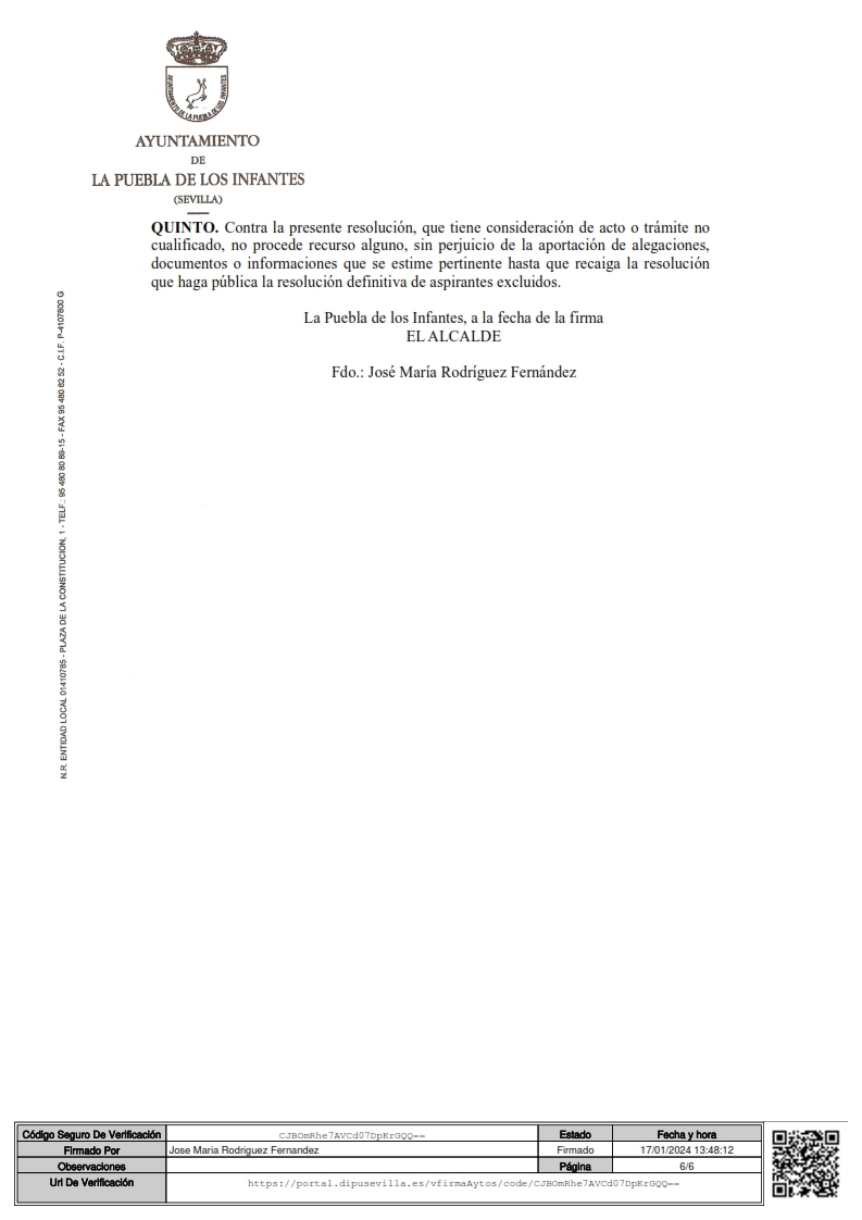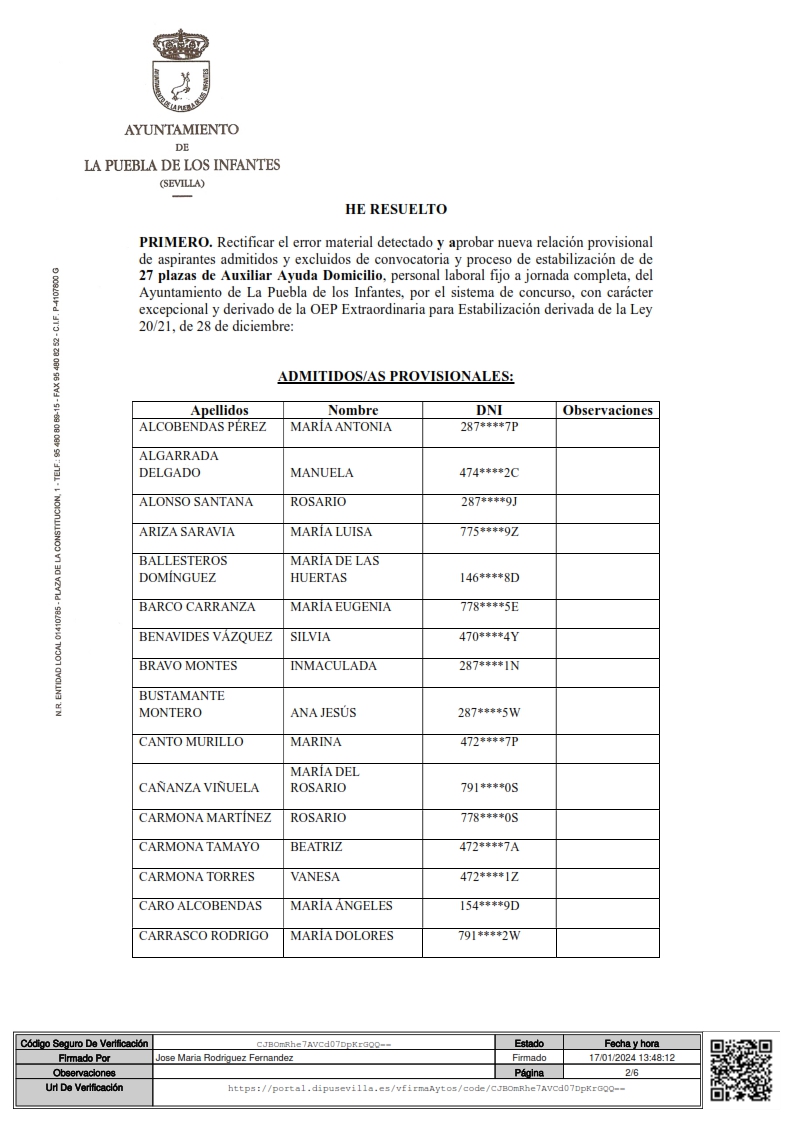 Imagen Imágenes Ubicación Categoría noticia Empleo Mostrar en el carrusel de la sección No Fecha Mié, 17/01/2024 - 14:21 Más información http://www.lapuebladelosinfantes.es/es/actualidad/noticias/Relacion-provisional…