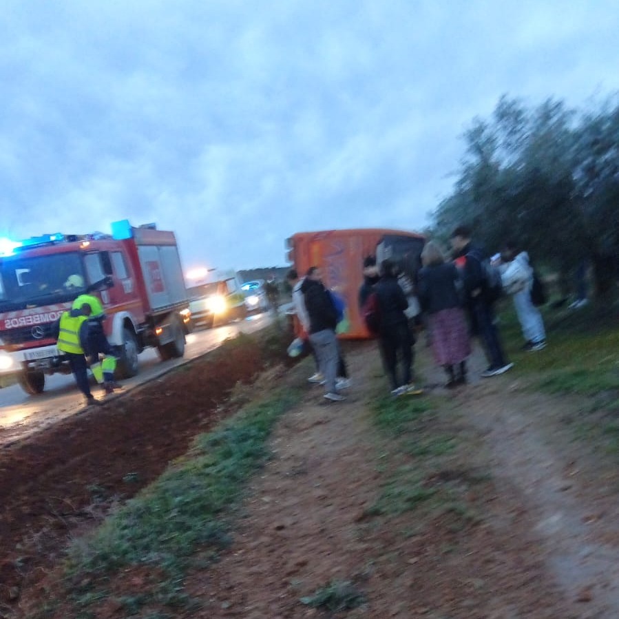 Esta mañana a las 8:05 h. el teléfono 112 recibía las primeras llamadas de socorro alertando de la salida de la vía y posterior vuelco del autobús escolar que traslada cada mañana a los jóvenes de nuestro municipio a los institutos de Estepa.