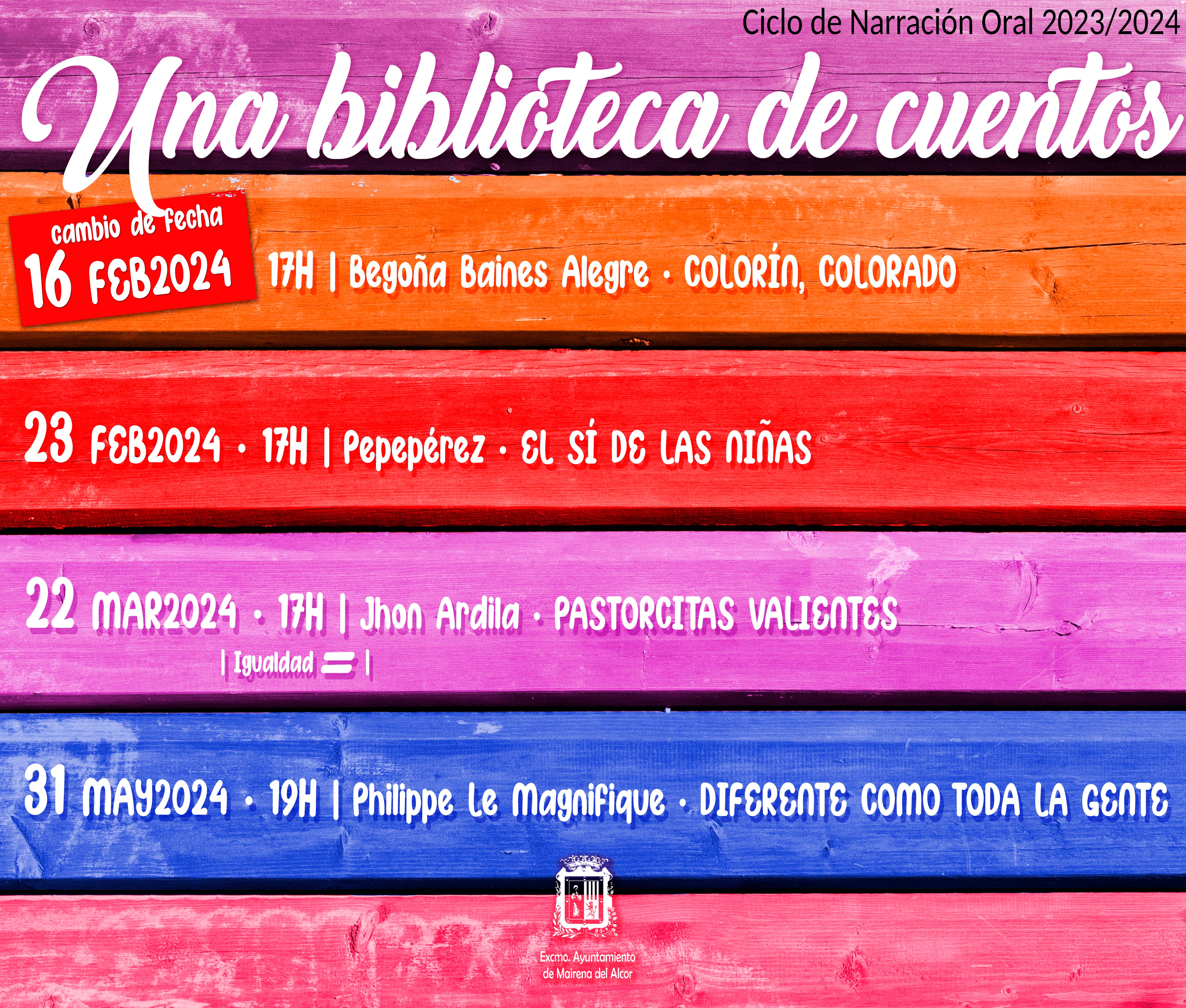 El Cuentacuentos de Begoña Baines, Colorín, colorado, previsto para este viernes 26 de enero se aplaza por motivos de salud. La nueva fecha de celebración es el viernes 16 de febrero en la biblioteca pública José Manuel Lara.