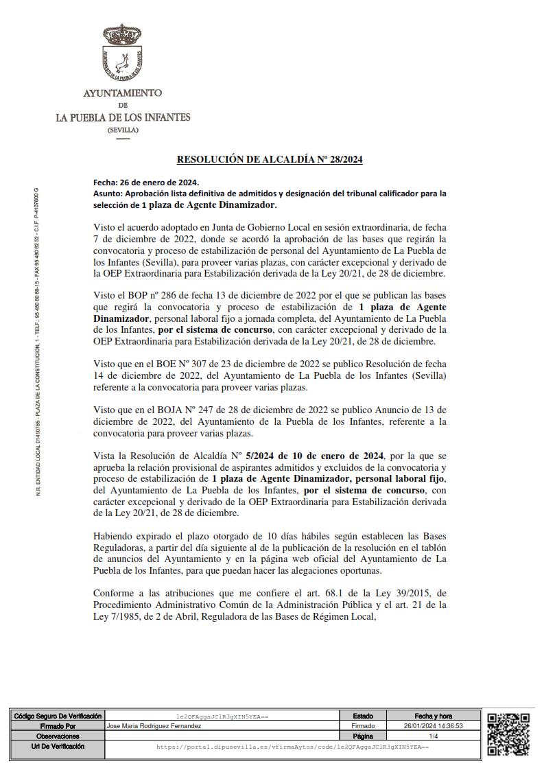 Imagen Imágenes Ubicación Categoría noticia Empleo Mostrar en el carrusel de la sección No Fecha Lun, 29/01/2024 - 09:28 Más información http://www.lapuebladelosinfantes.es/es/actualidad/noticias/Relacion-definitiva-…
