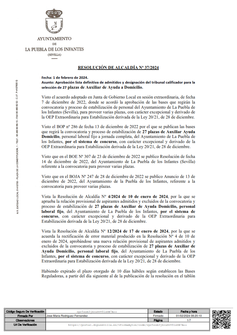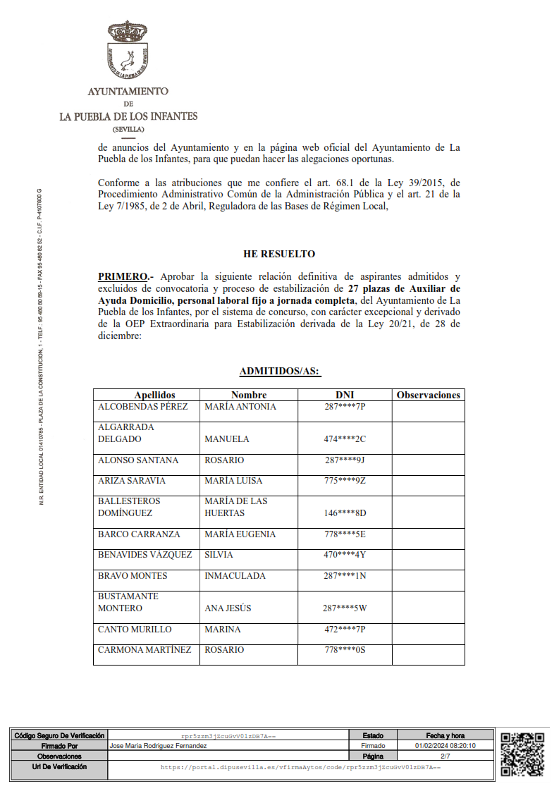Imagen Imágenes Ubicación Categoría noticia Empleo Mostrar en el carrusel de la sección No Fecha Jue, 01/02/2024 - 09:48 Más información http://www.lapuebladelosinfantes.es/es/actualidad/noticias/Relacion-definitiva-…