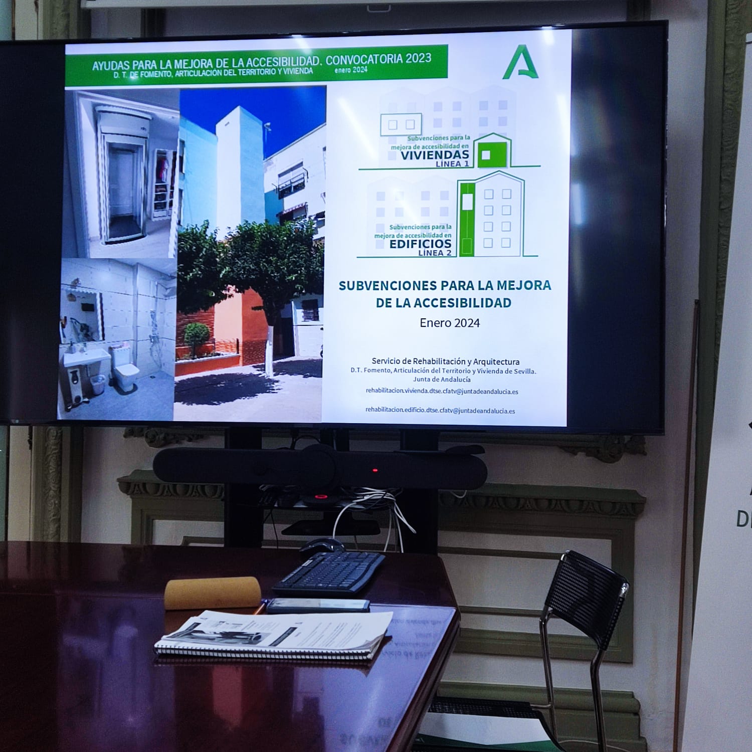 En el día de ayer nuestro arquitecto técnico municipal, Virgilio Guillén, asistió a las sesión informativa sobre la próxima apertura del plazo para solicitar subvenciones para la mejora de la accesibilidad de viviendas (Línea 1) y de igual forma para edificios (Línea 2), en la Delegación de Vivienda en Sevilla.