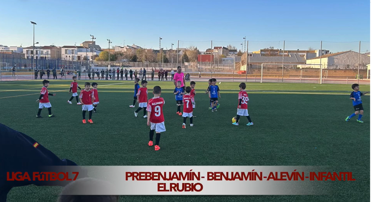 Los PREBENJAMINES, BENJAMÍNES, ALEVINES e INFANTILES rubeños disputaron una jornada más de la Liga de Fútbol 7 en el polideportivo municipal de El Rubio.