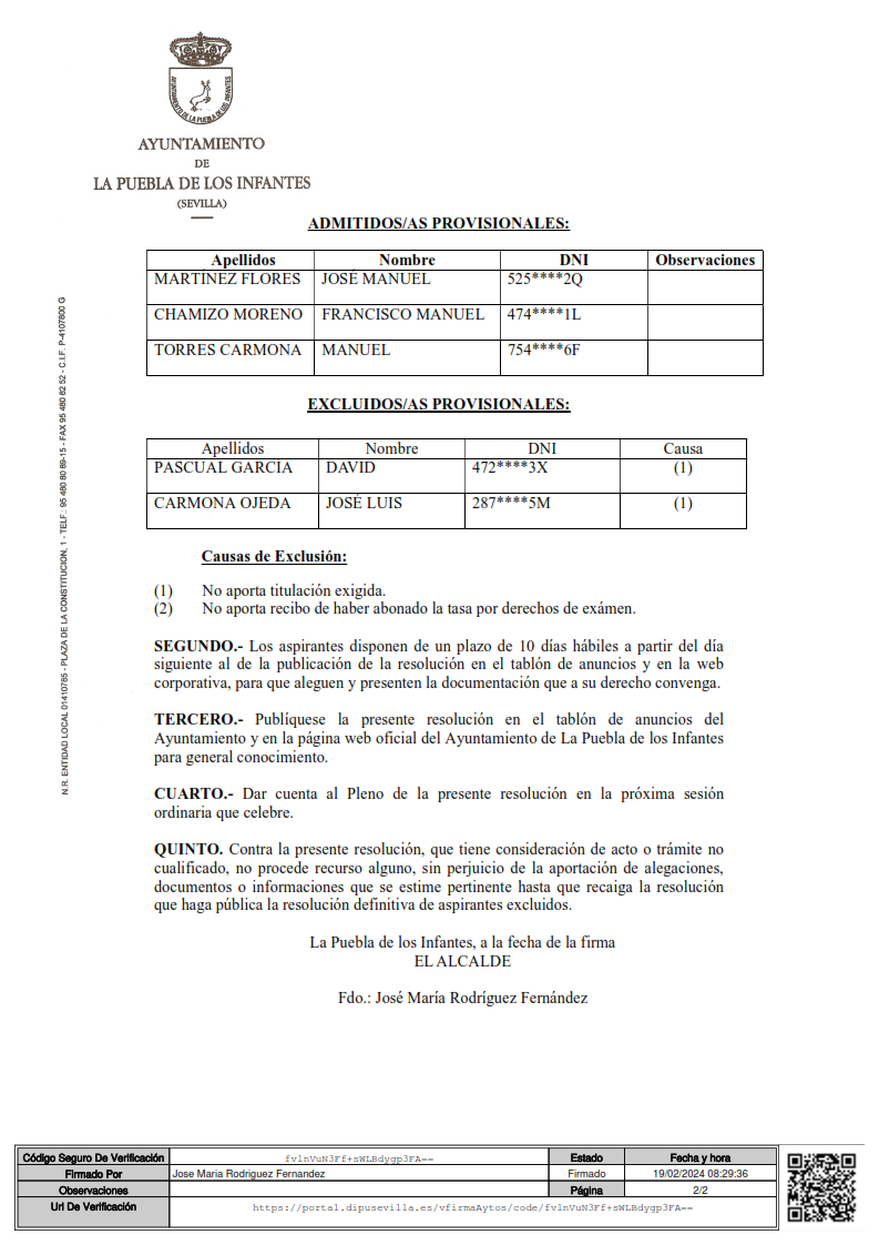 Imagen Imágenes Ubicación Categoría noticia Empleo Mostrar en el carrusel de la sección No Fecha Lun, 19/02/2024 - 09:03 Más información http://www.lapuebladelosinfantes.es/es/actualidad/noticias/Relacion-provisional…