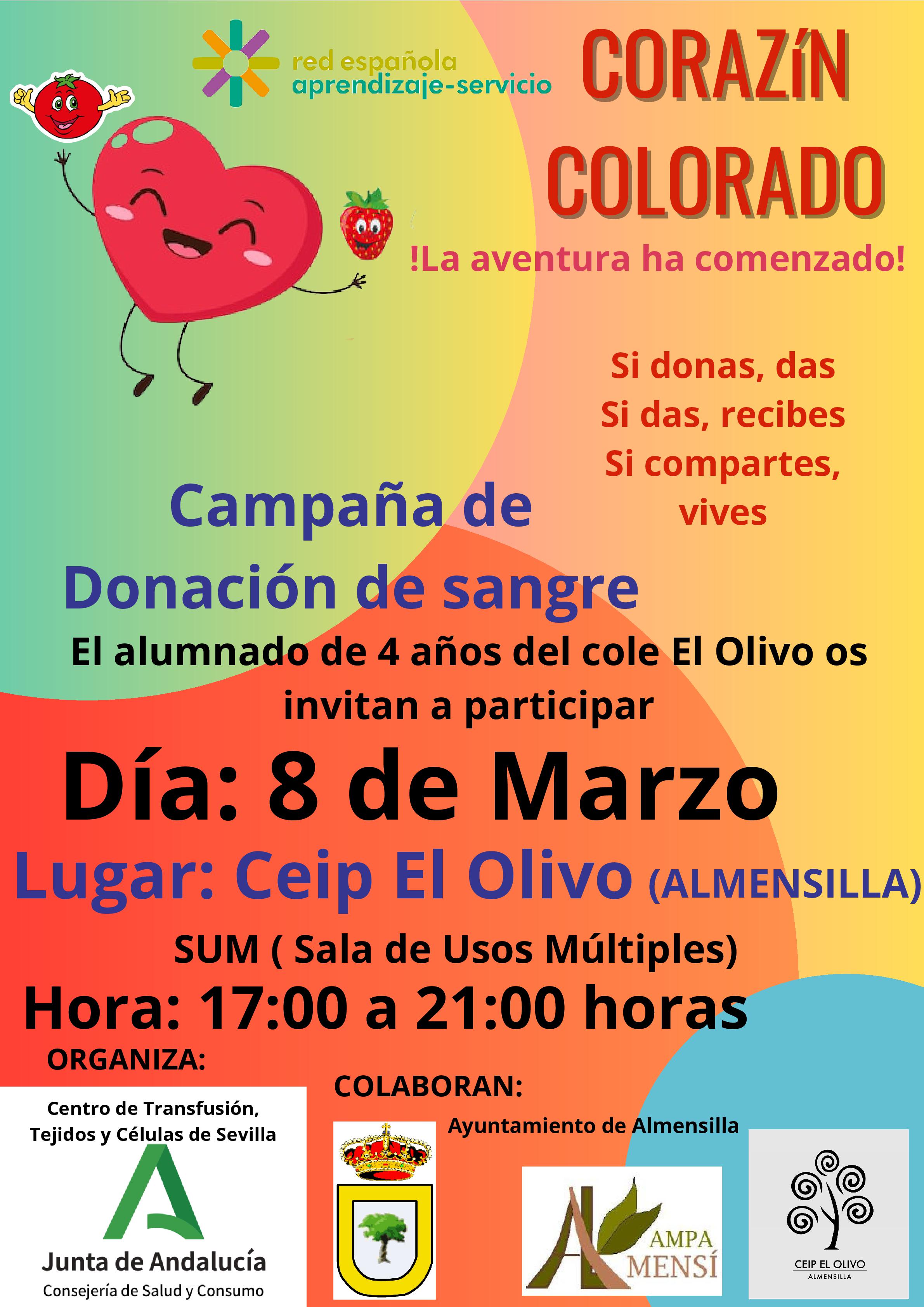 El viernes 8 de marzo habrá una campaña de donación de sangre en la que colabora el Excmo. Ayuntamiento de Almensilla.