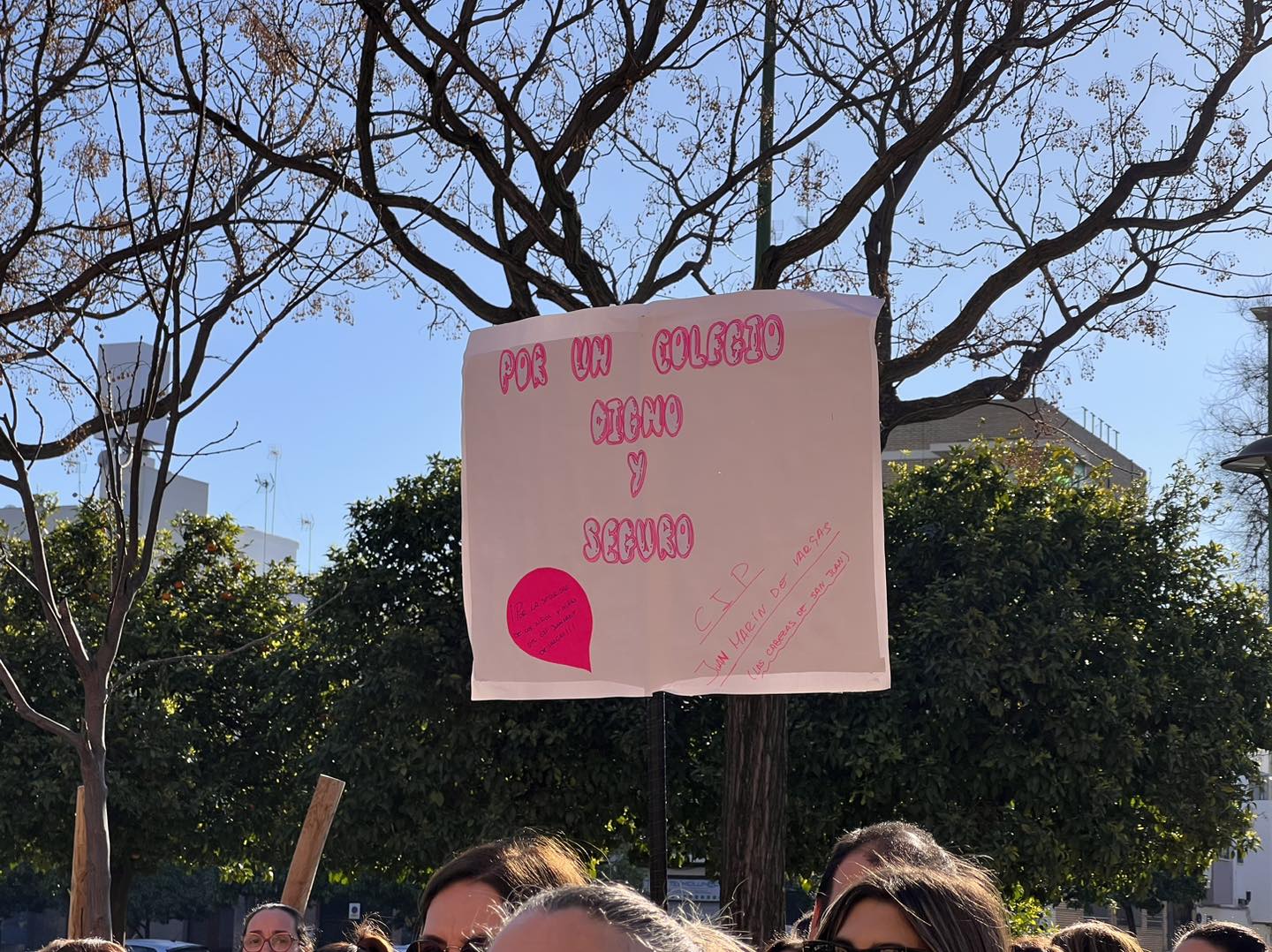 El alcalde de Las Cabezas, Pepe Solano, junto con la delegada de Educación, Noemí Marchena comunicaban la petición de manifestarse y este martes acompañaban, junto a los tenientes alcalde Nieves Hernández, Violeta González y Borja Mena, a los propios padres y madres en la protesta. Desde el AMPA se han recogido más de 2.500 firmas para pedir que la Junta de Andalucía de soluciones a un problema que tiene en vilo a cientos de familias en esta localidad sevillana. En las puertas de delegación las madres y padres pedían un encuentro con el delegado, Miguel Ángel Araúz, y según informaron los representantes de los padres y madres afectados, así como el propio alcalde de la localidad, "tras más de dos horas y media, el delegado no nos ha querido recibir ni tan siquiera a los padres y madres, en estos momentos no existen colores políticos sino el único objetivo de dar a los niños y niñas de Las Cabezas un colegio digno y seguro", señalaba el primer edil cabeceño.