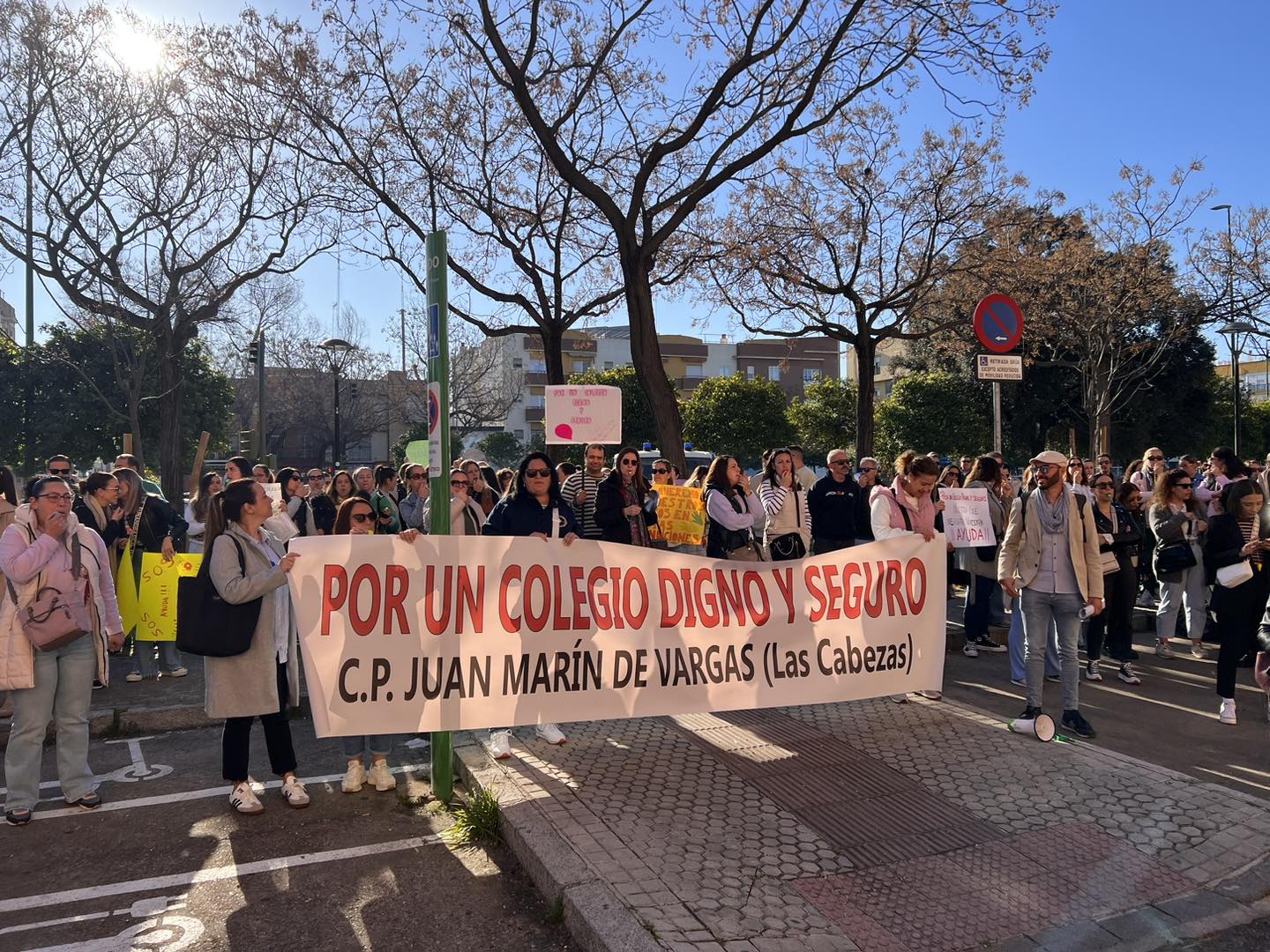 Un edificio con problemas en una de sus vigas obliga a la reubicación de decenas de niños del CEIP Juan Marín de Vargas, de Las Cabezas de San Juan, por este hecho la calidad educativa se ve mermada. Por ello, y por el peligro que supone para los más pequeños y pequeñas, más de 160 padres y madres se han concentrado este martes, 20 de febrero, en las puertas de la delegación provincial de Educación en Sevilla para exigir a la Junta de Andalucía el arreglo inmediato de este edificio clausurado por seguridad por parte del Ayuntamiento hace unos meses.
