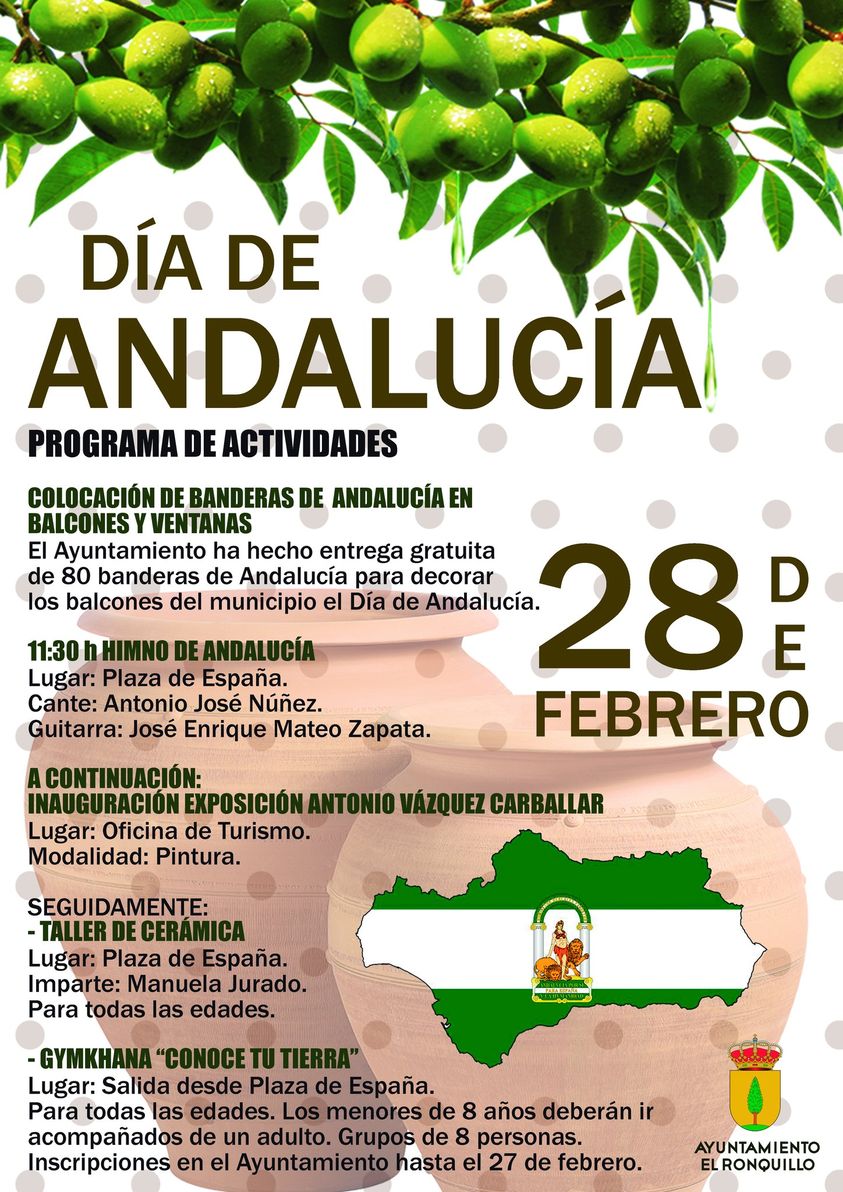 El Ayuntamiento de El Ronquillo presenta el programa de actividades organizado para celebrar el próximo miércoles 28 de febrero, el DÍA DE ANDALUCÍA: