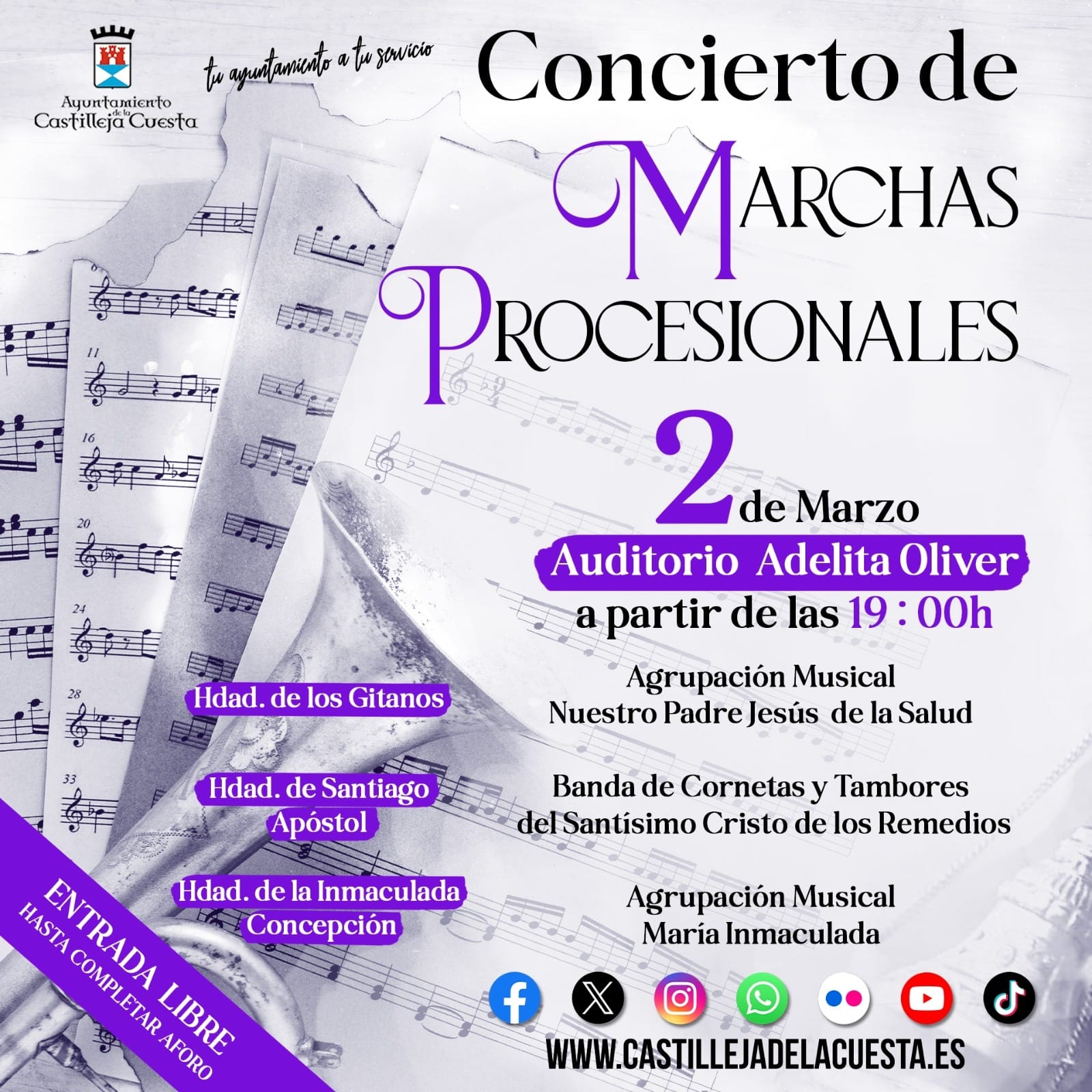 Fecha inicio Sáb, 02/03/2024 - 14:40 Fecha fin Sáb, 02/03/2024 - 14:40 Imágenes Ubicación Categoría evento Ciudadanía Mostrar en el carrusel de la sección No Más información http://www.castillejadelacuesta.es/es/actualidad/eventos/Concierto-de-marchas-p…