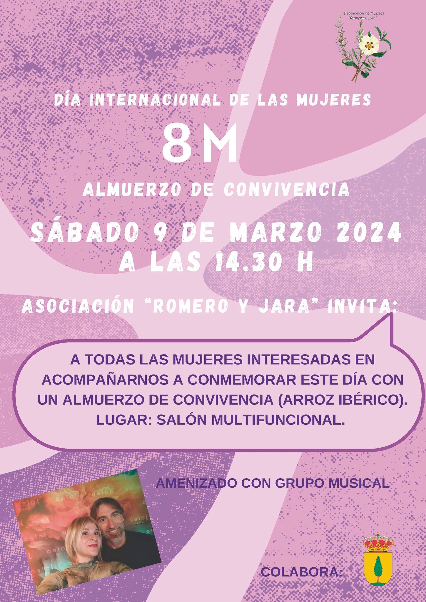 La Asociación de Mujeres "Romero y Jara" invita a todas las mujeres a asistir al Almuerzo Convivencia que tendrá lugar el sábado 9 de marzo a las 14:30 h. en el Salón Multifuncional, para conmemorar el 8 de marzo.