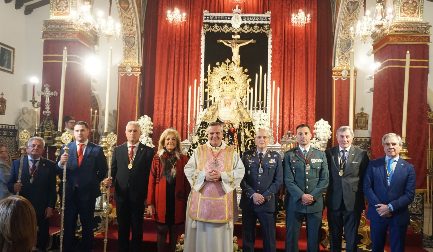Ayer tuvo lugar la Solemne Función Principal de Instituto en honor a Nuestra Señora de la Soledad, de la Hermandad de Santiago Apóstol, presidida por el párroco Alfonso José Filiberto del Castillo, a la que asistió la alcaldesa, Carmen Herrera, junto a su hermano mayor José Antonio Sánchez Mejías; el hermano mayor de la Hermandad de la Inmaculada Concepción, Narciso Rodríguez; el general de División y director de Enseñanza del Ejército del Aire y del Aire, Javier Hernández Antuña y el sargento Comandante de la Guardia Civil D. Rafael Moreno.