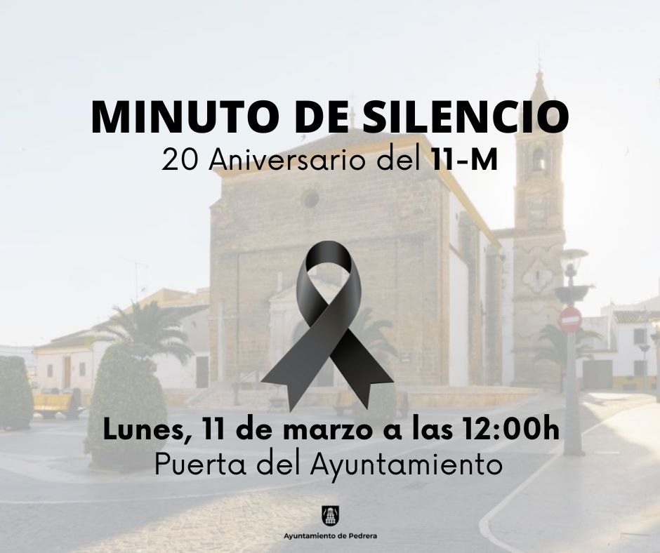 El Ayuntamiento de Pedrera se suma este lunes 11 de marzo, Día Europeo en Memoria de las Víctimas del Terrorismo, a las 12:00h, al minuto de silencio convocado con la Federación Española de Municipios y Provincias (FEMP), en memoria de las víctimas de los terribles atentados que costaron la vida a 193 personas en Madrid, y de los que se cumplen 20 años.