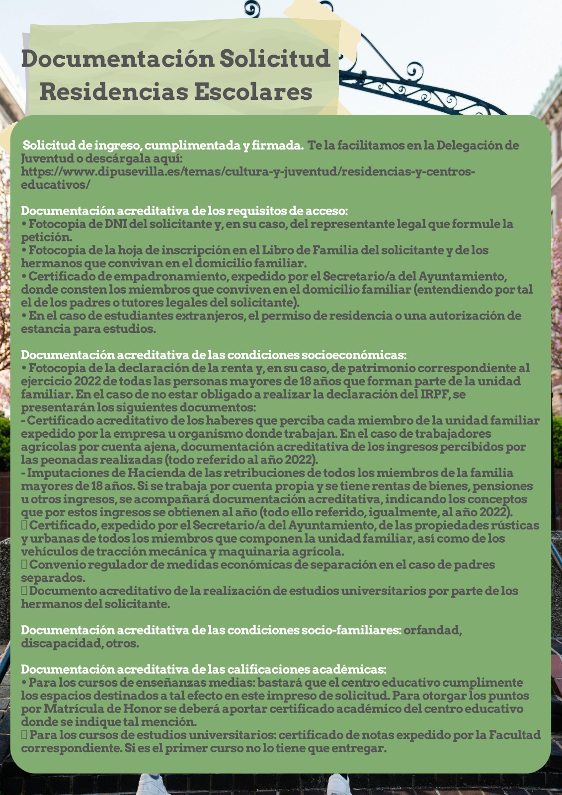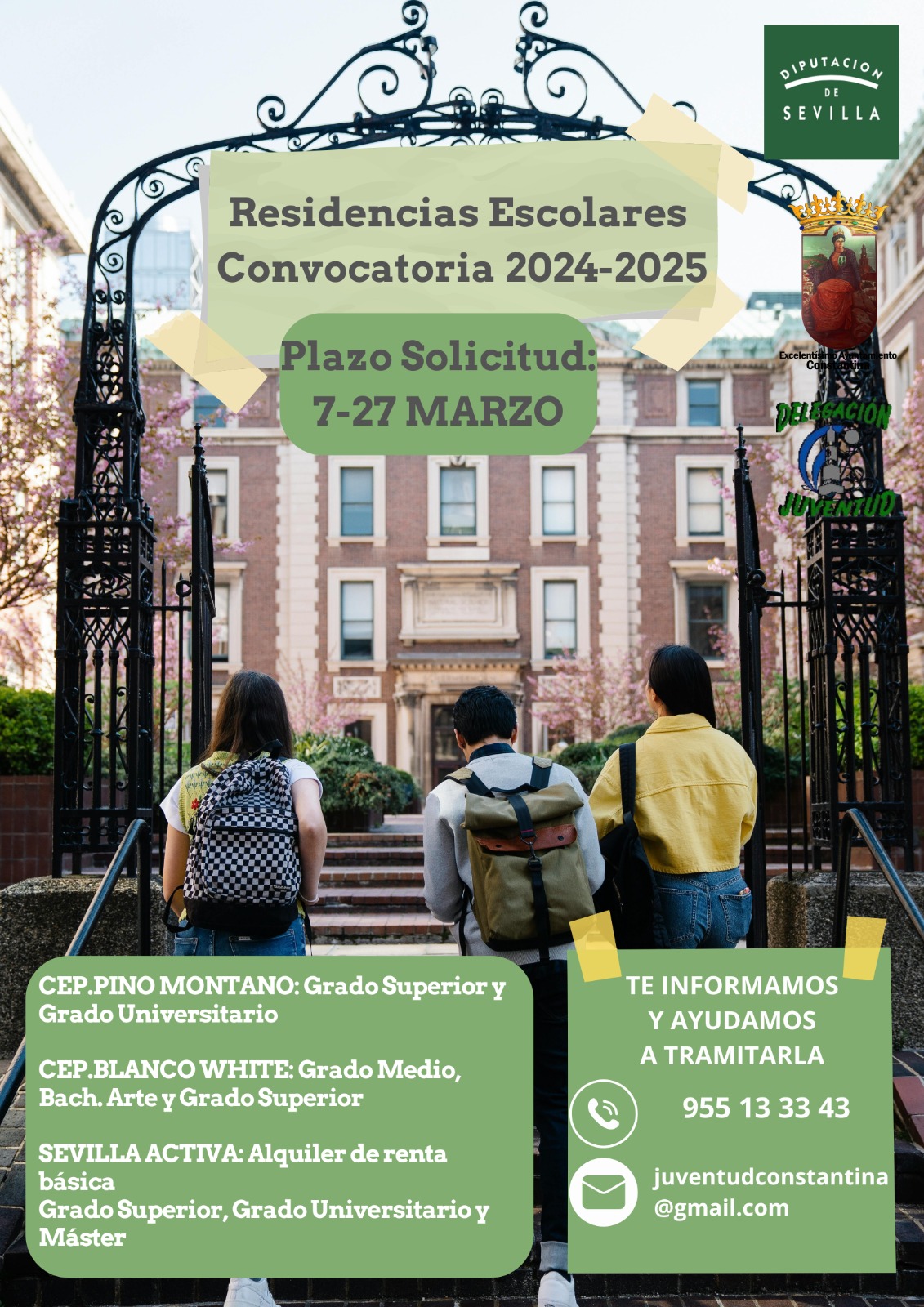 Si optáis por la tramitación desde la Delegación de Juventud, se darán citas hasta el viernes 22 de marzo. Pide tu cita al 955 13 33 43. Rogamos no dejarlo para el último día para poder revisar toda la documentación y evitar errores.