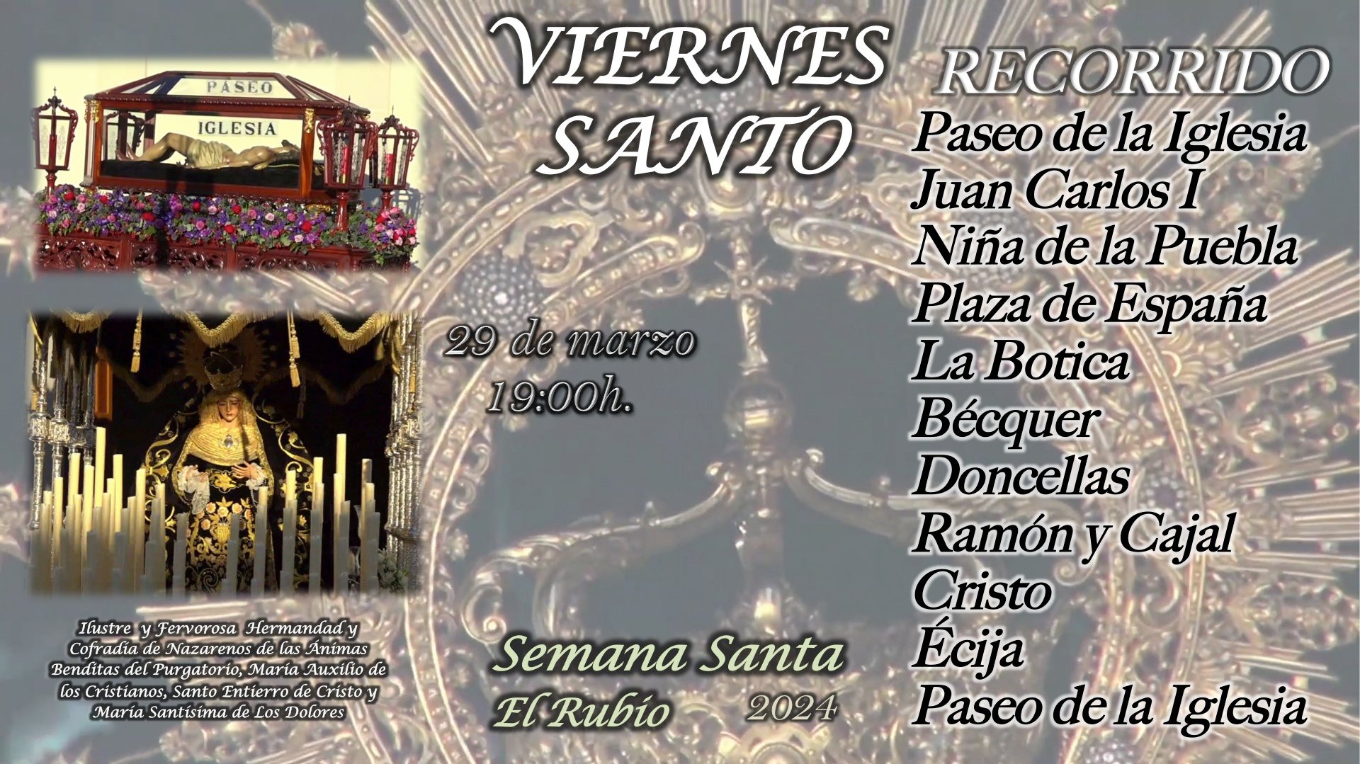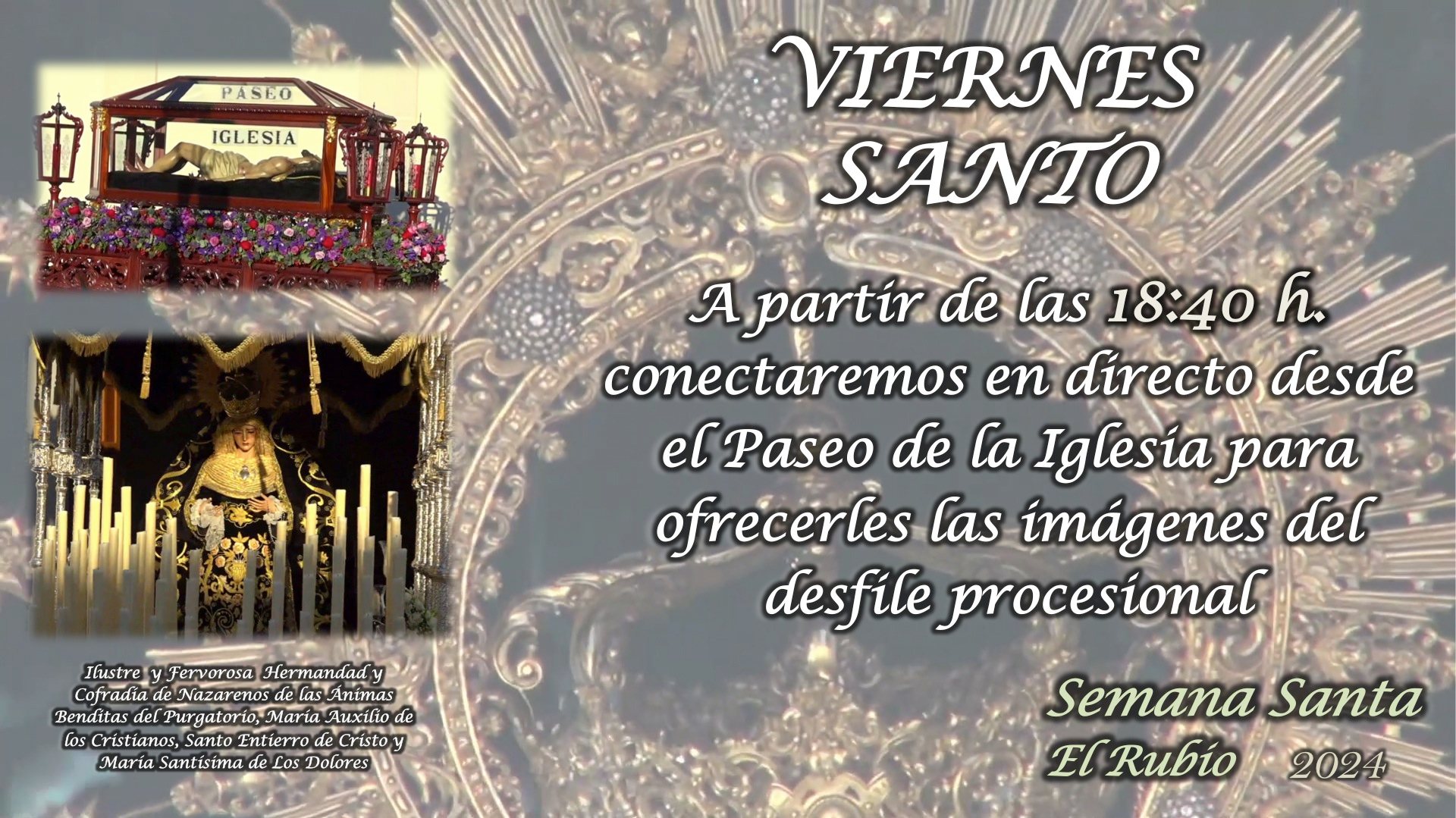 Hoy a las 18:40h. conectaremos en directo en EL RUBIO TV para retransmitir la salida procesional de la Ilustre y Fervorosa Hermandad y Cofradía de Nazarenos de las Ánimas Benditas del Purgatorio, María Auxilio de los Cristianos, Santo Entierro de Cristo y María Santísima de Los Dolores