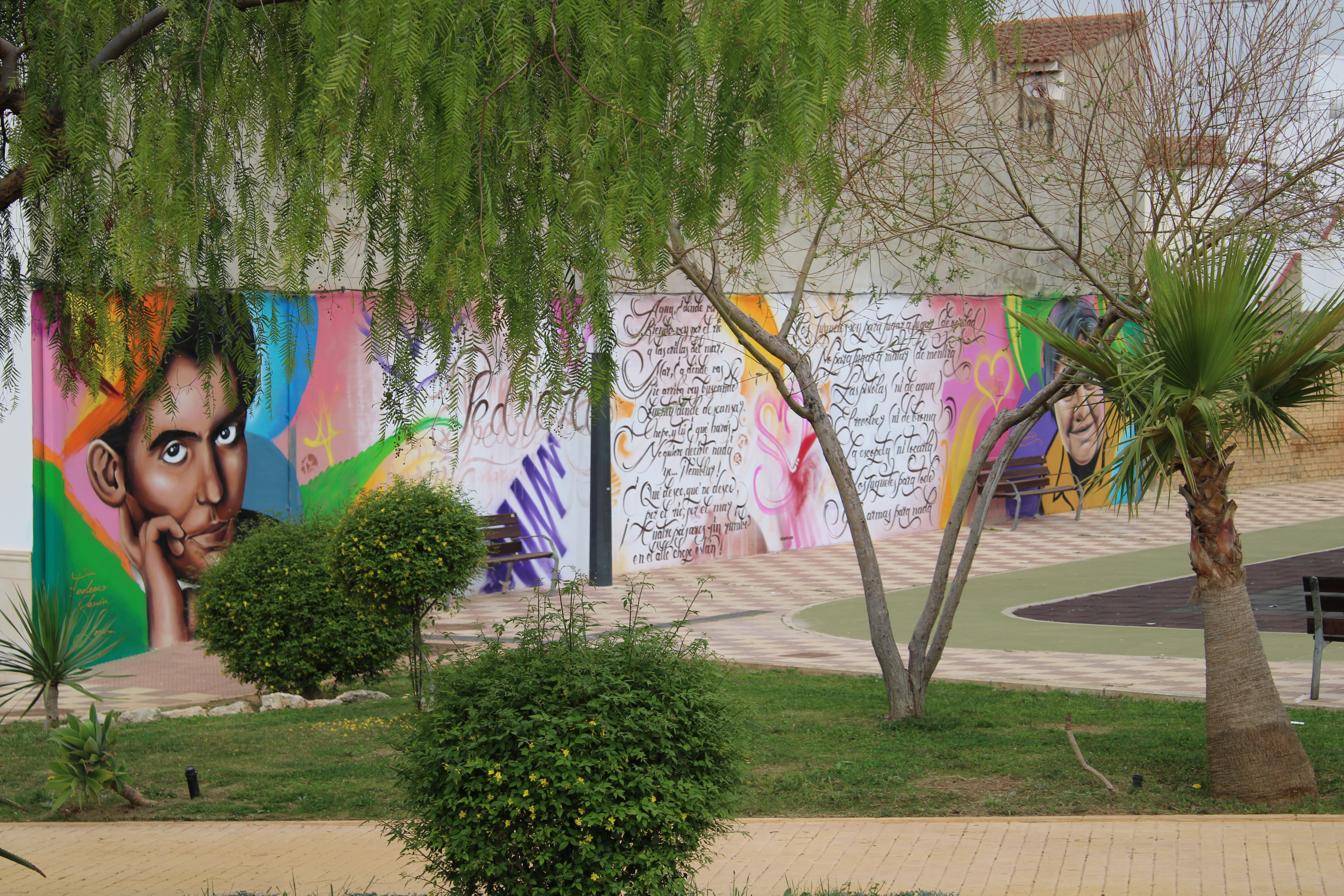 El Parque de Los Poetas cuenta ya con un nuevo atractivo: la pintura mural que el artista Bizcui Dyd ha realizado en uno de sus muros, dedicado al nombre del propio parque: los poetas. El artista ha querido representar en su obra distintos detalles realizados en caligrafity que incluye caligrafía o lettering, así como el rostro de Federico García Lorca o Gloría Fuertes.