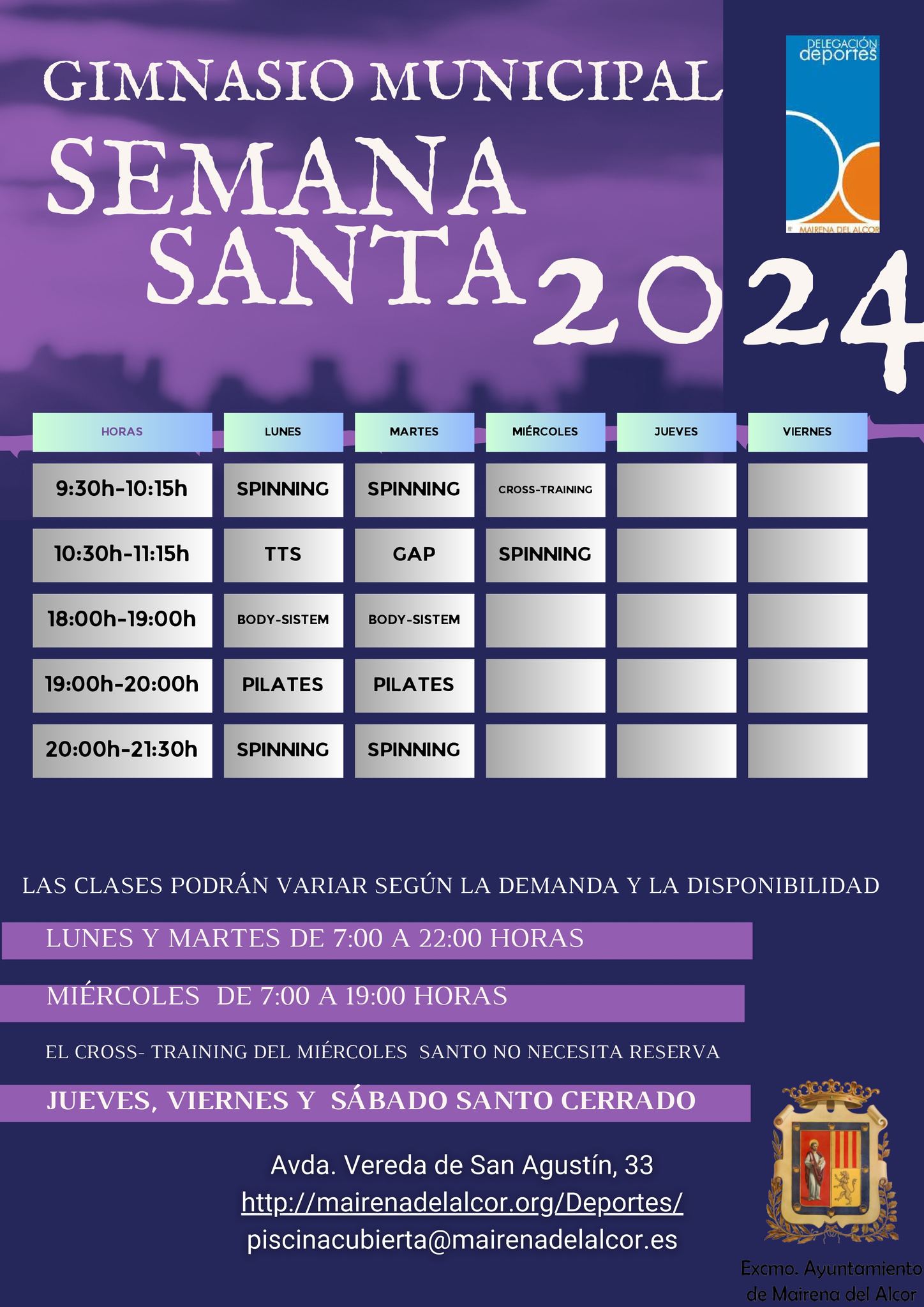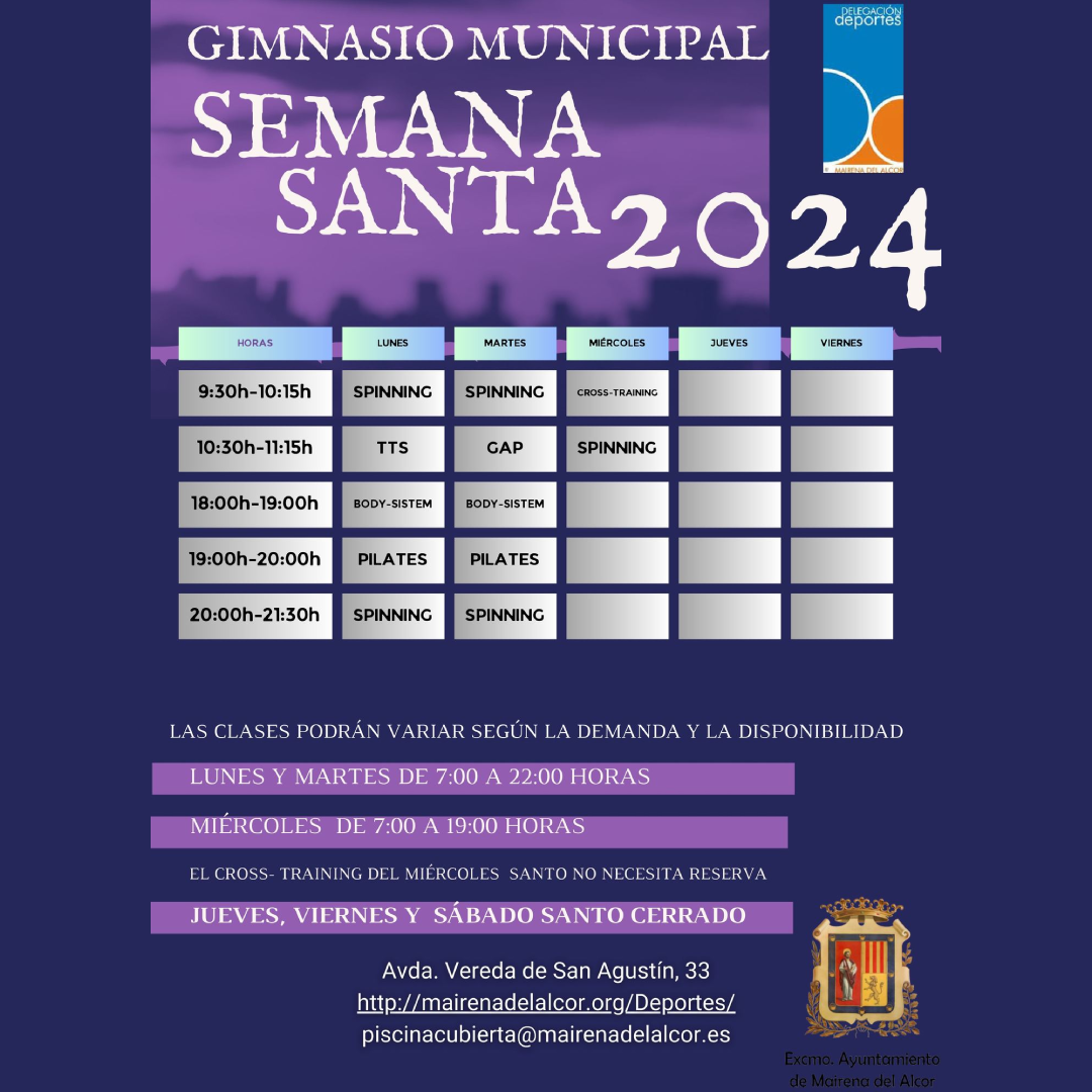 - Miércoles Santo de 7 a 19 horas. No es necesario reservar la clase de cross training