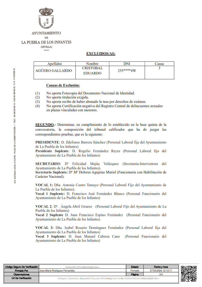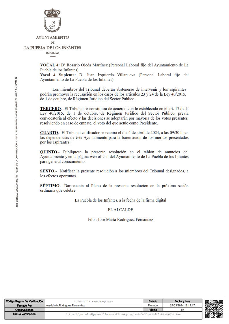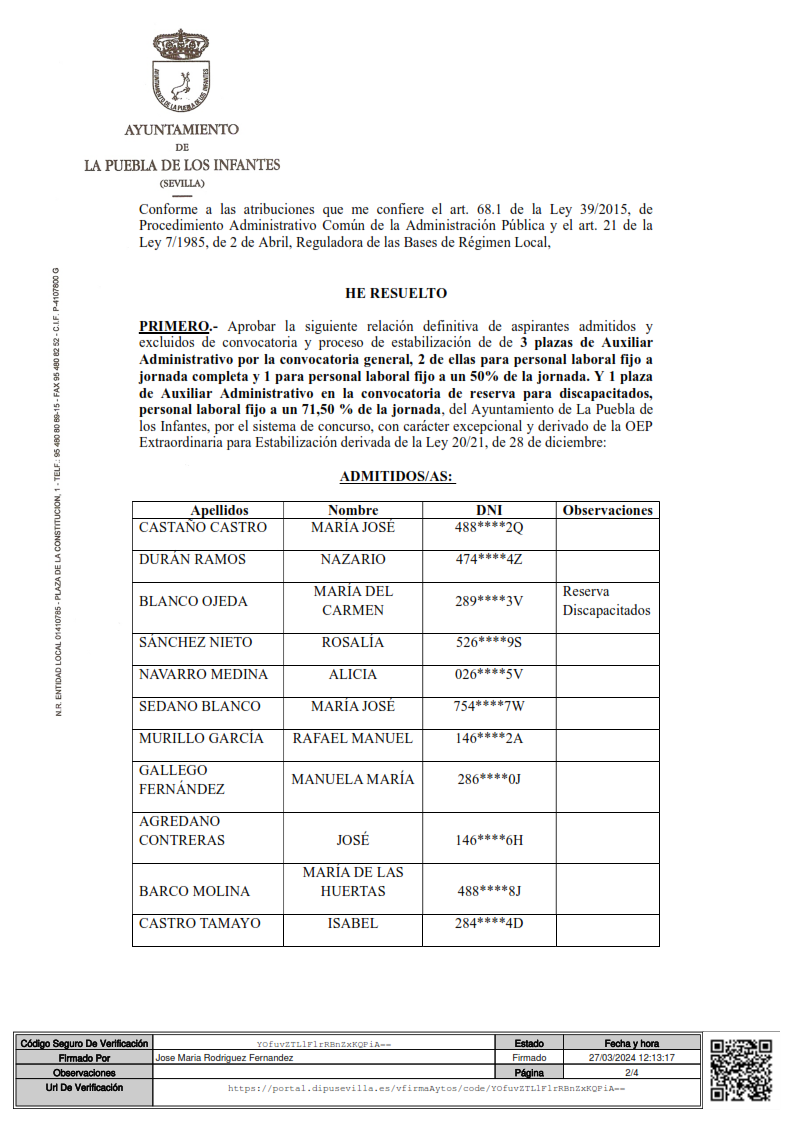 Imagen Imágenes Ubicación Categoría noticia Empleo Mostrar en el carrusel de la sección No Fecha Mié, 27/03/2024 - 13:06 Más información http://www.lapuebladelosinfantes.es/es/actualidad/noticias/Relacion-definitiva-…