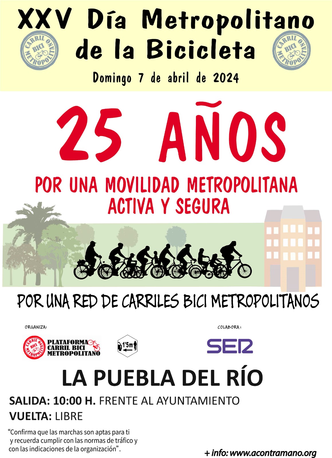 Será el próximo domingo, 7 de abril, a partir de las 10h de la mañana. Partirá desde la plaza del Ayuntamiento de La Puebla, para ir recogiendo a más participantes en Coria, Gelves, San Juan y, finalmente en Sevilla, donde confluirán 13 marchas de 25 pueblos.