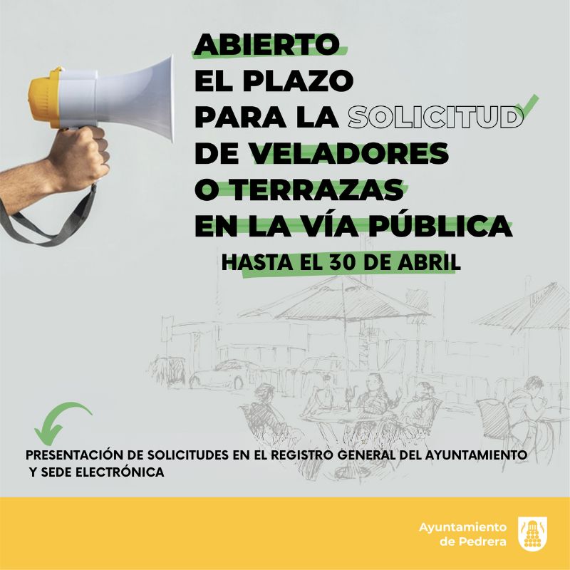 El Ayuntamiento de Pedrera ha puesto en marcha el plazo para que los hosteleros y hosteleras puedan realizar la solicitud de instalación de veladores o terrazas en la vía pública.