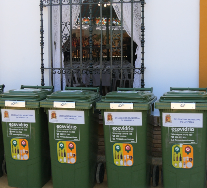 Se realizará una operativa de recogida puerta a puerta de envases de vidrio en las casetas, todos los días de 7:00 a 11:00 horas y el lunes 15 de abril a las 5:00. Además, se instalarán seis contenedores especiales para la recogida selectiva de vidrio en la hostelería, dos de ellos vinilados con motivos de la campaña y la feria.