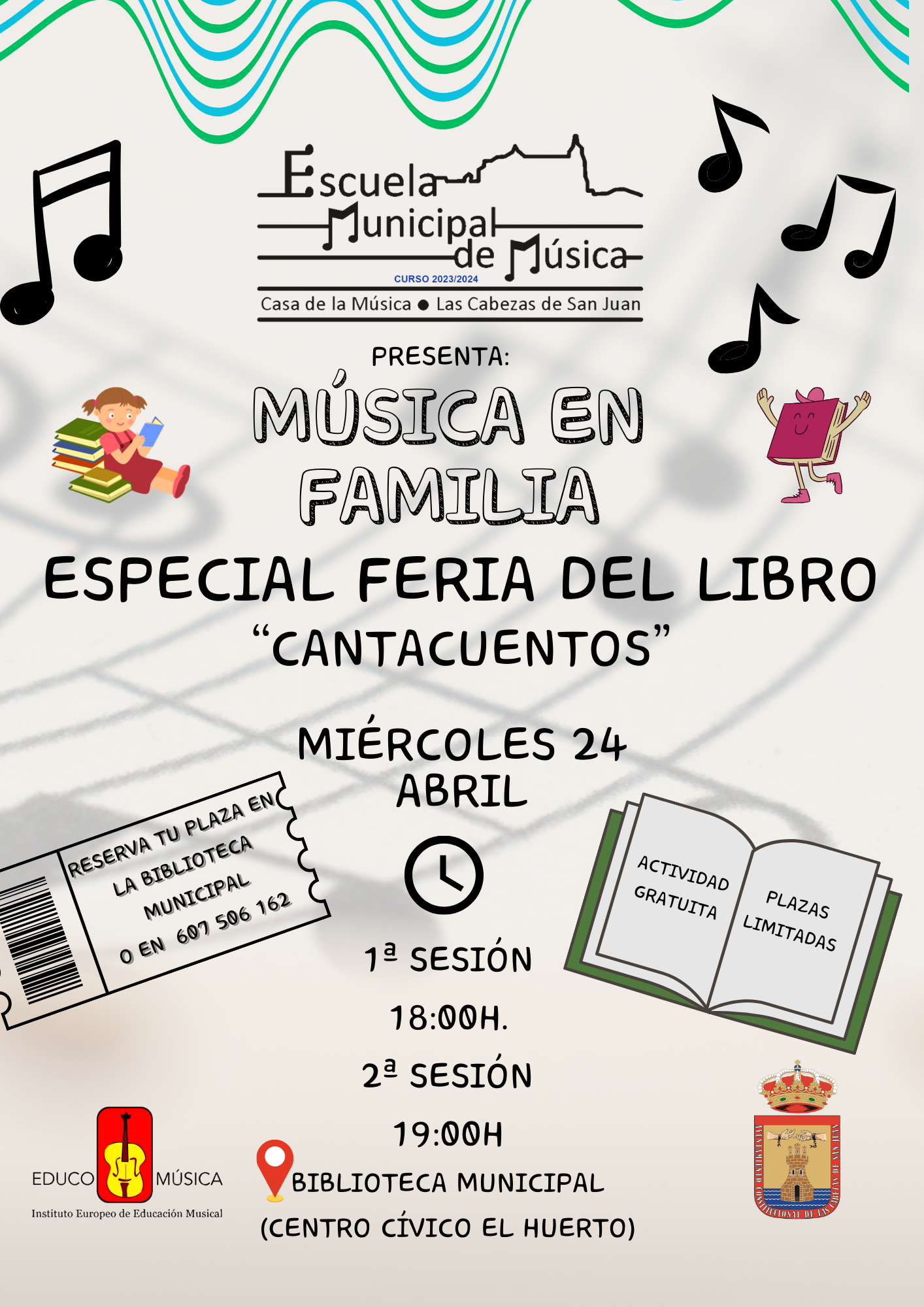 Reserva llamando al 607 50 61 62 o presencial en la Biblioteca Municipal.