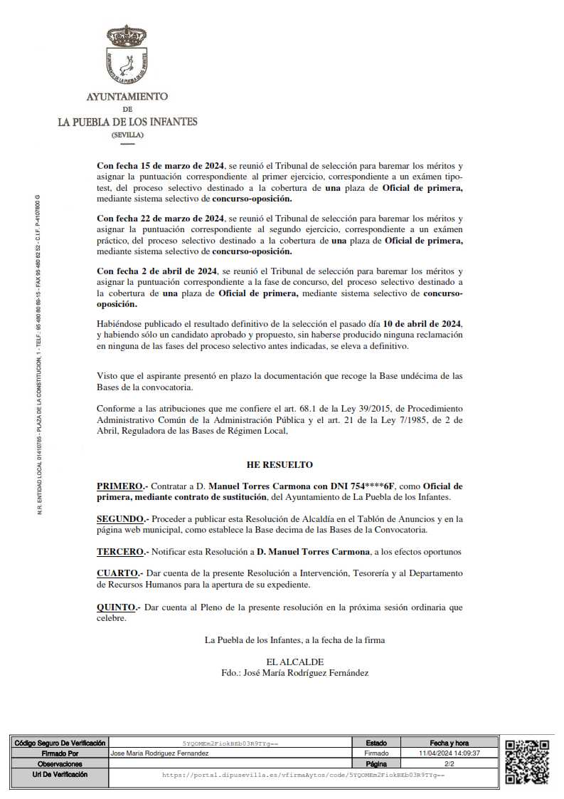 Imagen Imágenes Ubicación Categoría noticia Empleo Mostrar en el carrusel de la sección No Fecha Vie, 12/04/2024 - 11:35 Más información http://www.lapuebladelosinfantes.es/es/actualidad/noticias/Anuncio-del-nombrami…