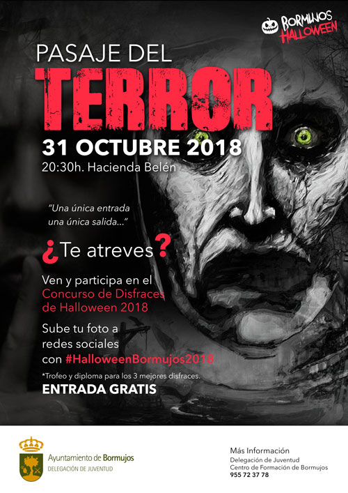 Se acerca la llegada de los muertos y su terrorífica noche de los monstruos. El Ayuntamiento de Bormujos, a través de la Delegación de Juventud, te permitirá verlos de cerca el próximo 31 de octubre en el Pasaje del Terror de la Hacienda Belén.