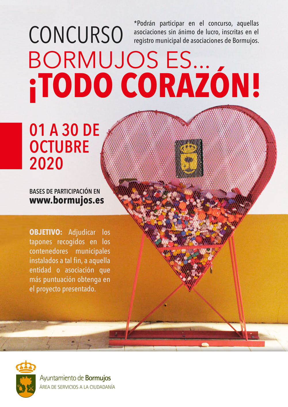 El concurso es un apoyo a las iniciativas solidarias de índole social, cultural, humanitaria y/o medioambiental, que podrán recibir los tapones recogidos en los 3 recipientes ubicados en la localidad.