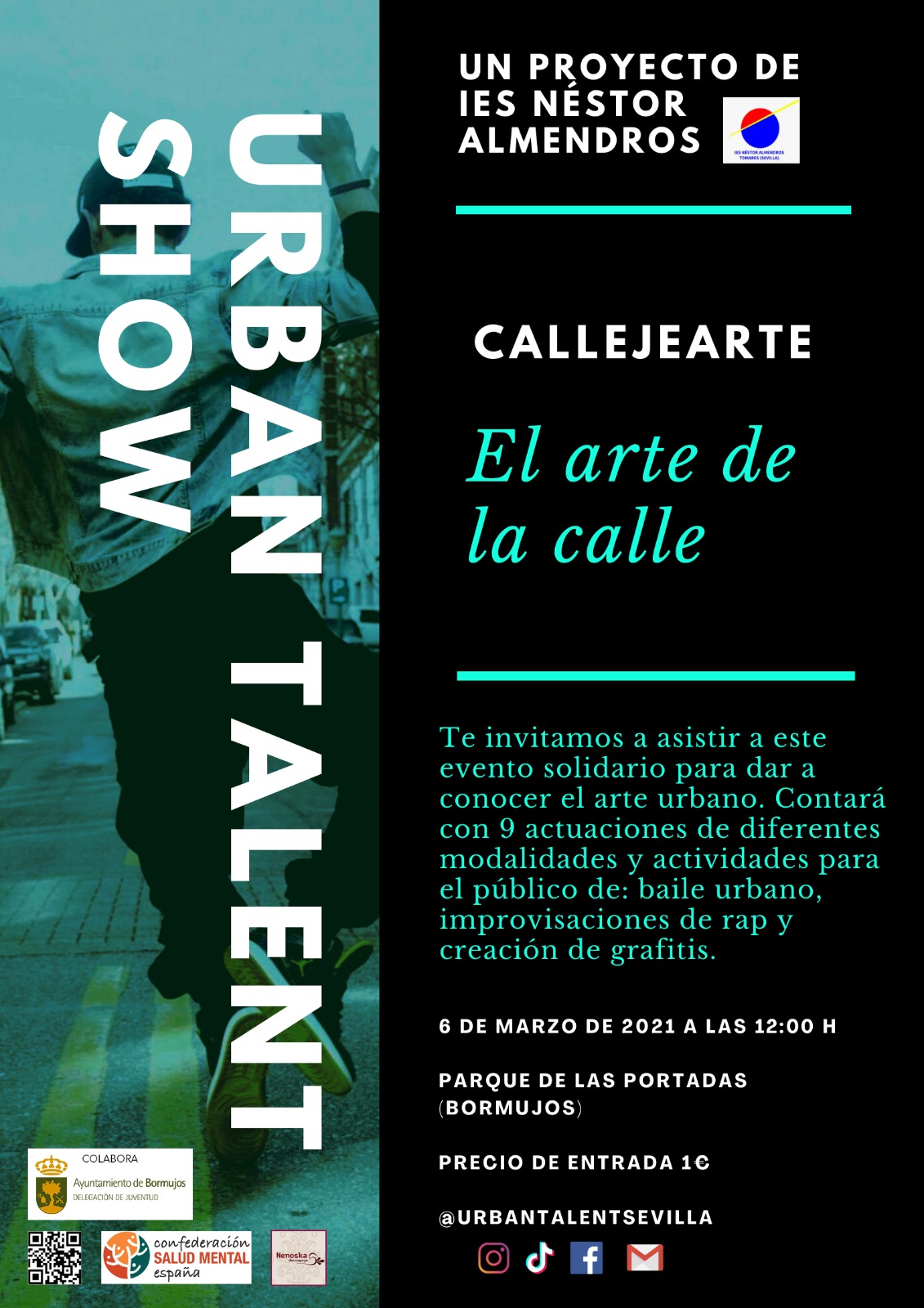 El próximo sábado día 6 de marzo Bormujos se convertirá en el escenario de Urban Talent Show, una iniciativa del IES Néstor Almendros sobre el "arte de la calle", con la colaboración del Ayuntamiento de Bormujos.