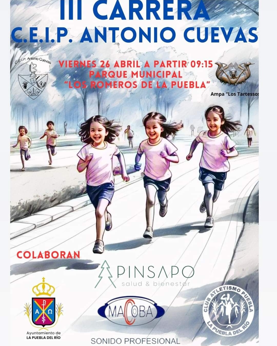 Fecha inicio Vie, 26/04/2024 - 09:15 Fecha fin Vie, 26/04/2024 - 14:00 Imágenes Ubicación Categoría evento Bienestar social Mostrar en el carrusel de la sección No Más información http://www.lapuebladelrio.es/es/actualidad/eventos/III-Carrera-CEIP-Antonio-Cue…