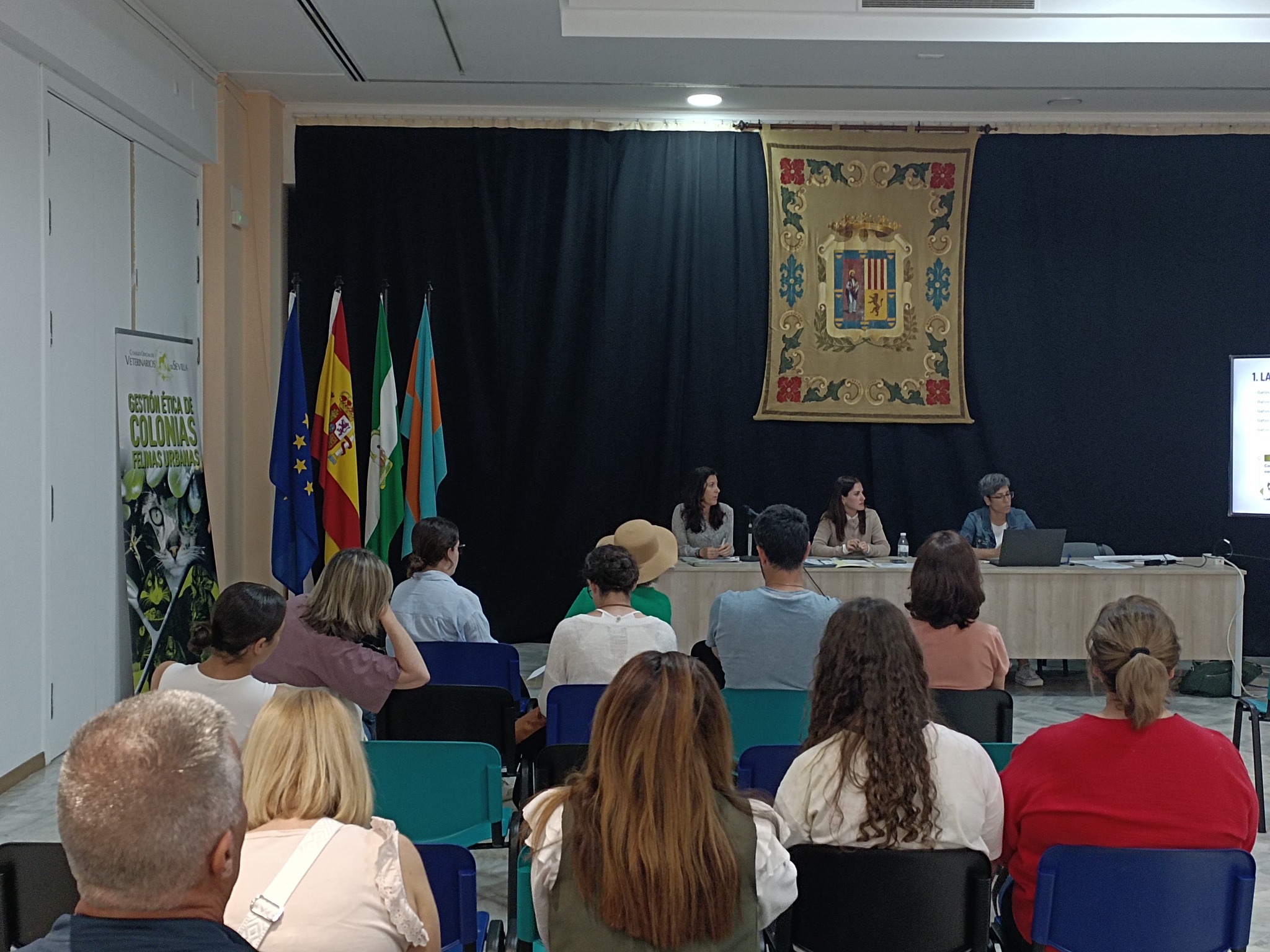 Vecinos y cuidadores de gatos comunitarios recibieron ayer una sesión formativa a cargo de técnicas del Ayuntamiento y del Colegio de Veterinarios de Sevilla. La sesión contó con la intervención de la concejala de Medio Ambiente, Ana María Guillén.