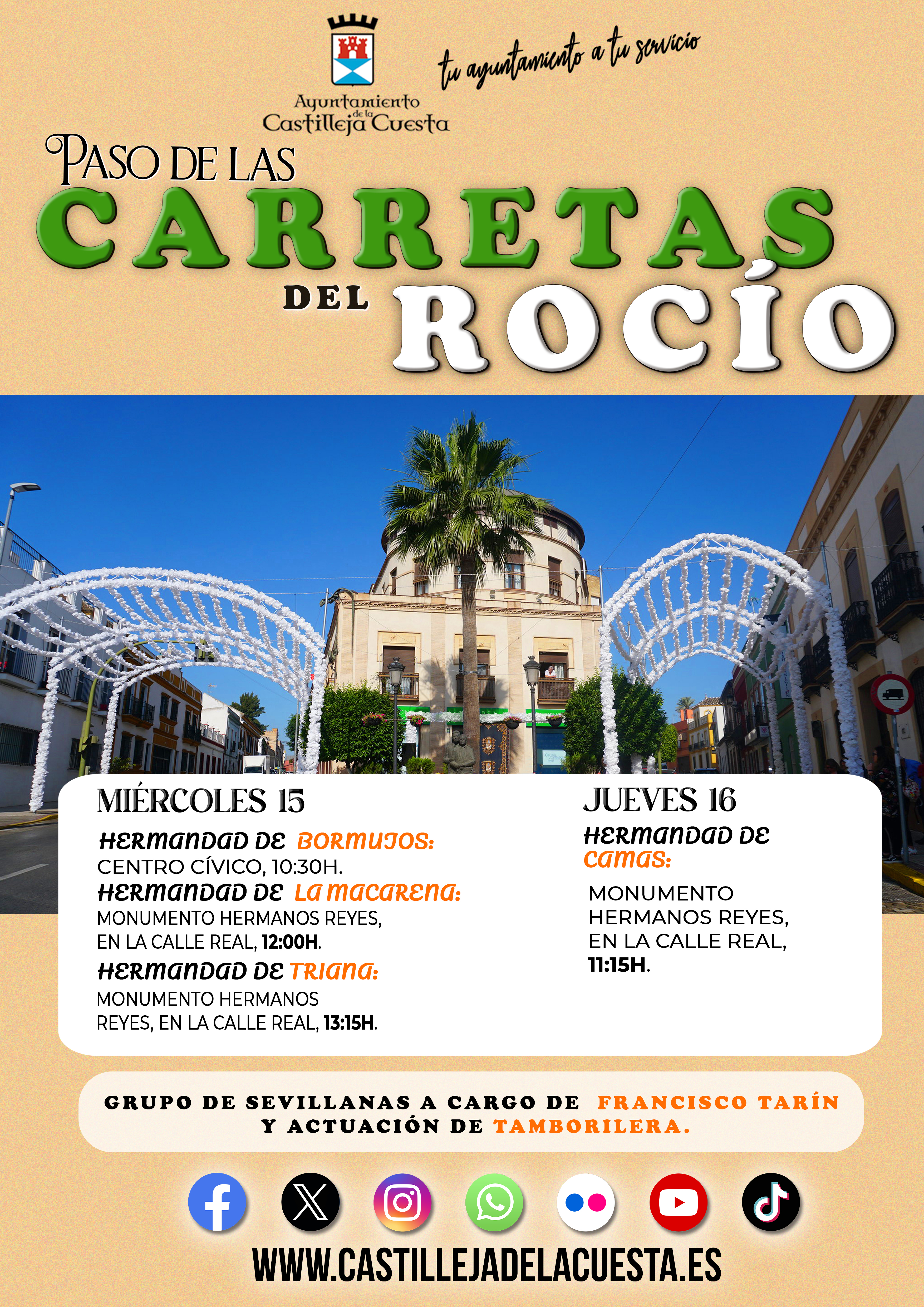 Fecha inicio Mié, 15/05/2024 - 08:33 Fecha fin Jue, 16/05/2024 - 08:33 Imágenes Ubicación Categoría evento Ciudadanía Mostrar en el carrusel de la sección No Más información http://www.castillejadelacuesta.es/es/actualidad/eventos/Paso-de-las-Carreretas…