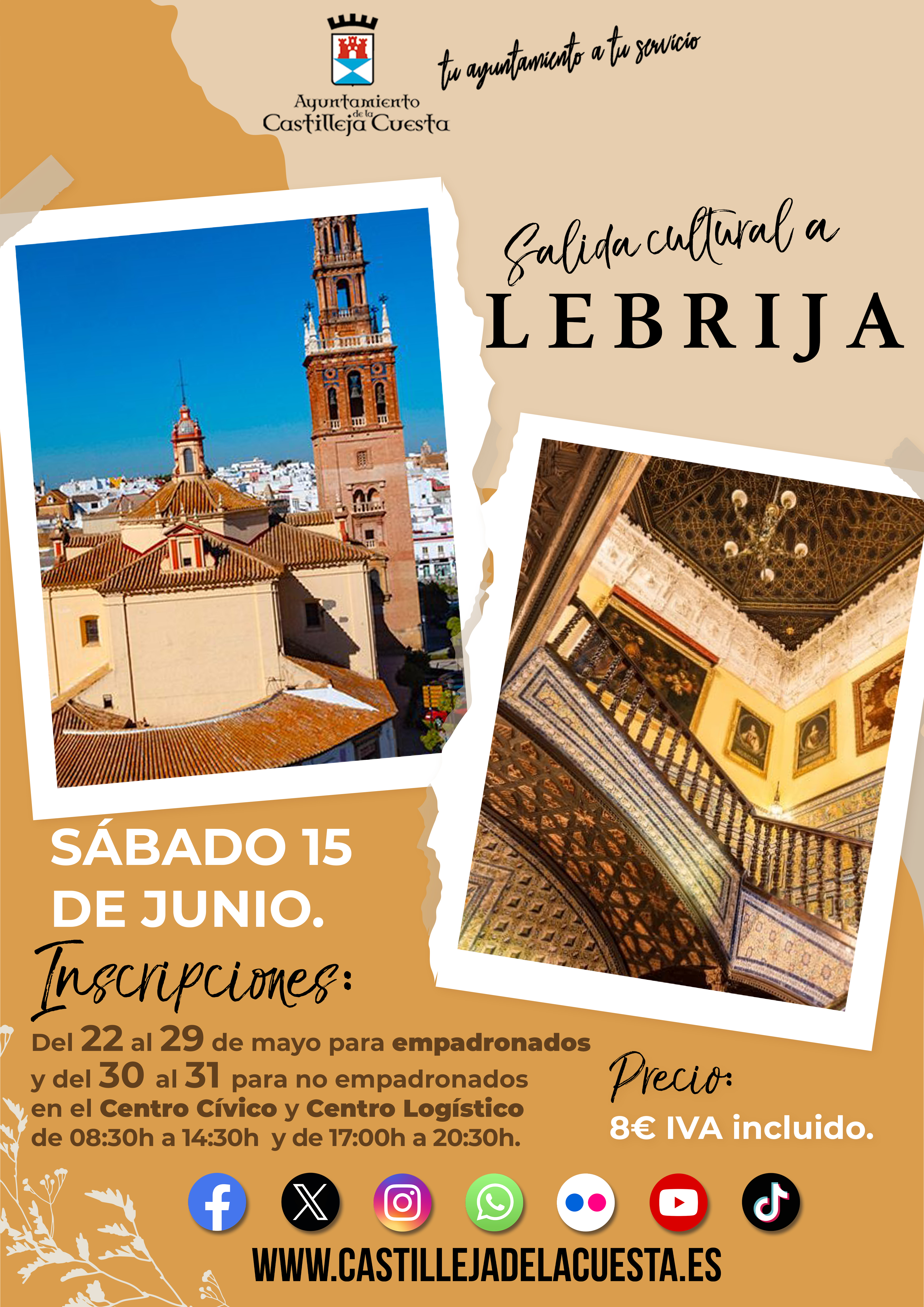 Fecha inicio Mié, 22/05/2024 - 09:52 Fecha fin Sáb, 15/06/2024 - 09:52 Imágenes Ubicación Categoría evento Ciudadanía Mostrar en el carrusel de la sección No Más información http://www.castillejadelacuesta.es/es/actualidad/eventos/Visita-Cultural-a-Lebr…