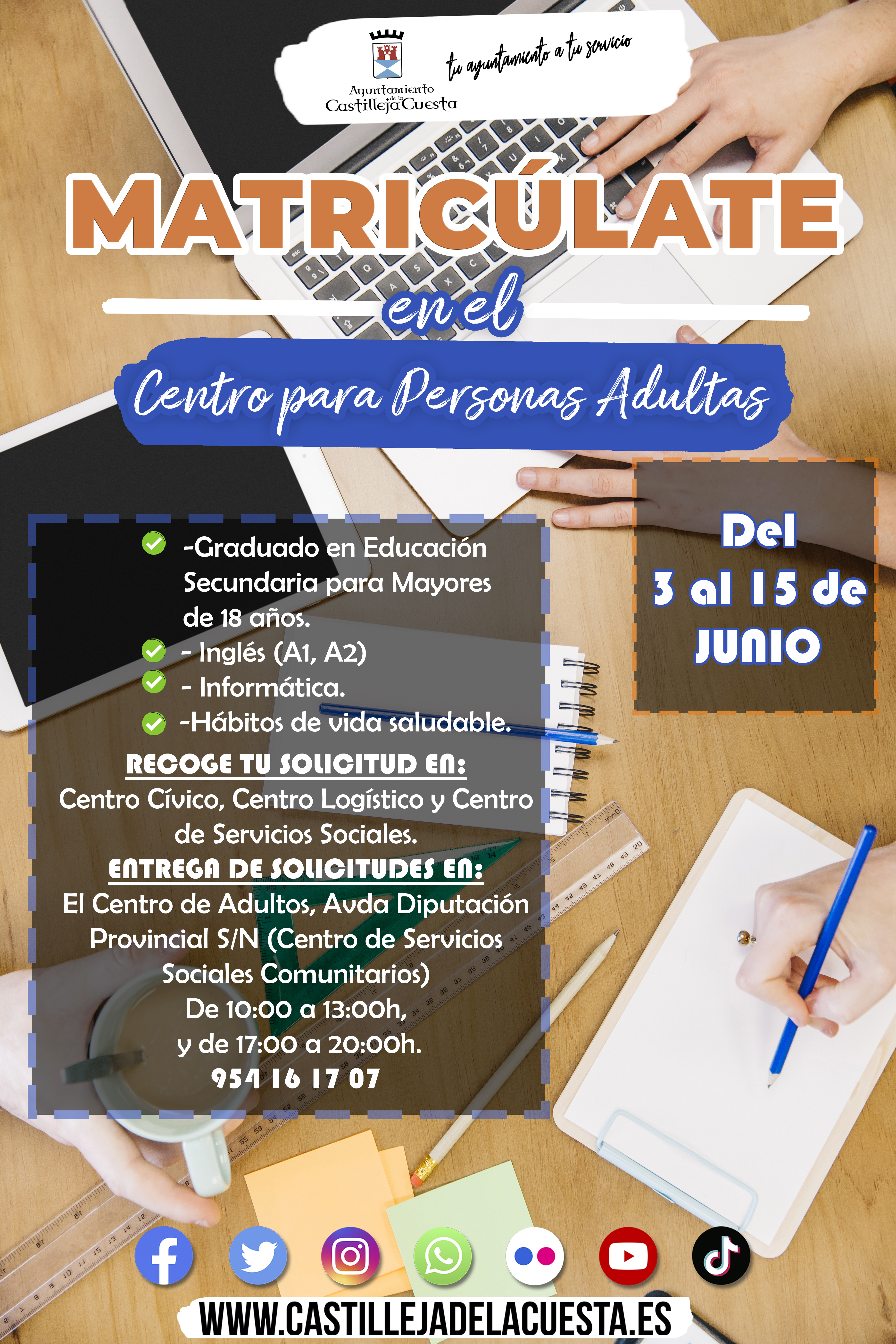 Fecha inicio Lun, 03/06/2024 - 13:37 Fecha fin Sáb, 15/06/2024 - 13:37 Imágenes Ubicación Categoría evento Ciudadanía Mostrar en el carrusel de la sección No Más información http://www.castillejadelacuesta.es/es/actualidad/eventos/Matriculacion-en-el-Ce…