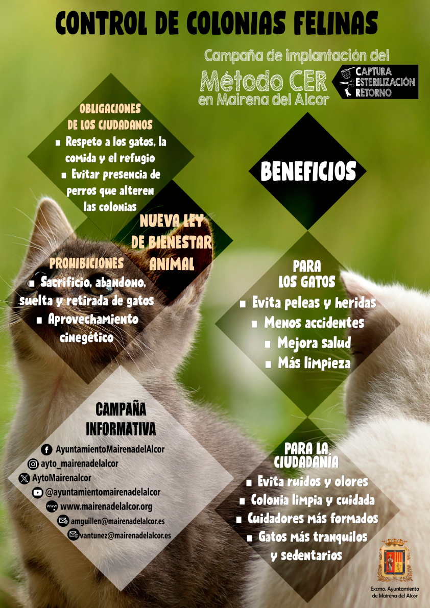 La ordenanza Municipal reguladora del Control de Colonias Felinas aprobada en el pleno del martes 30 de enero abre la inscripción oficial de todas las personas interesadas en formar parte como voluntarios y autorizados de las colonias felinas.